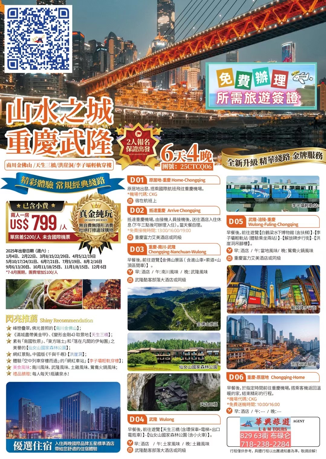 旅游山水之城 重慶武隆重慶三峽 七天五夜
