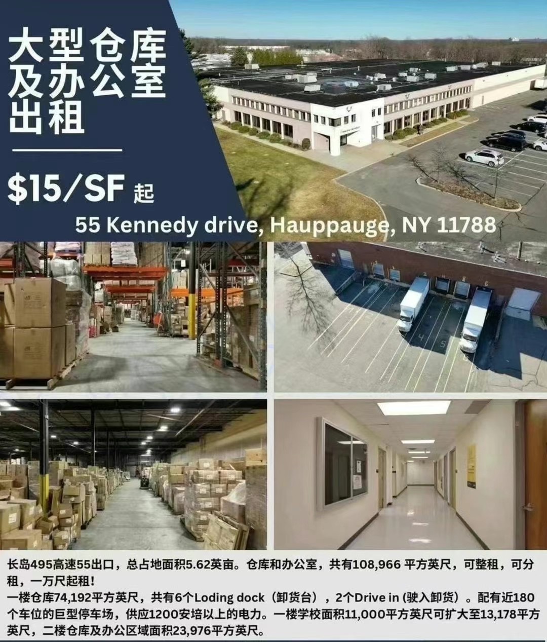 纽约仓库出租 新上市凯业地产 10万尺仓库出租(可分租)