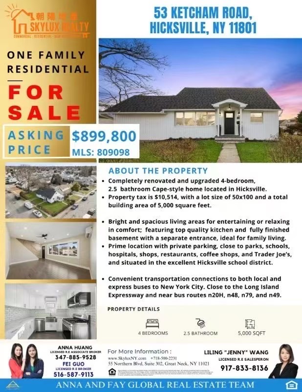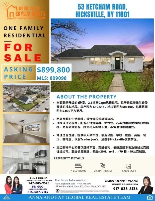长岛希克斯维尔房子出售Hicksville NY新上市长岛希克斯维尔学区房屋独家出售买卖[太阳][太阳]🏅🏅👏👏🎈周末公展 Weekend Open house: 🎈周六 12:30-2:30🎈周日 11:30-1:30🆕🧡Hicksville 中心地帶💰價格$899,800