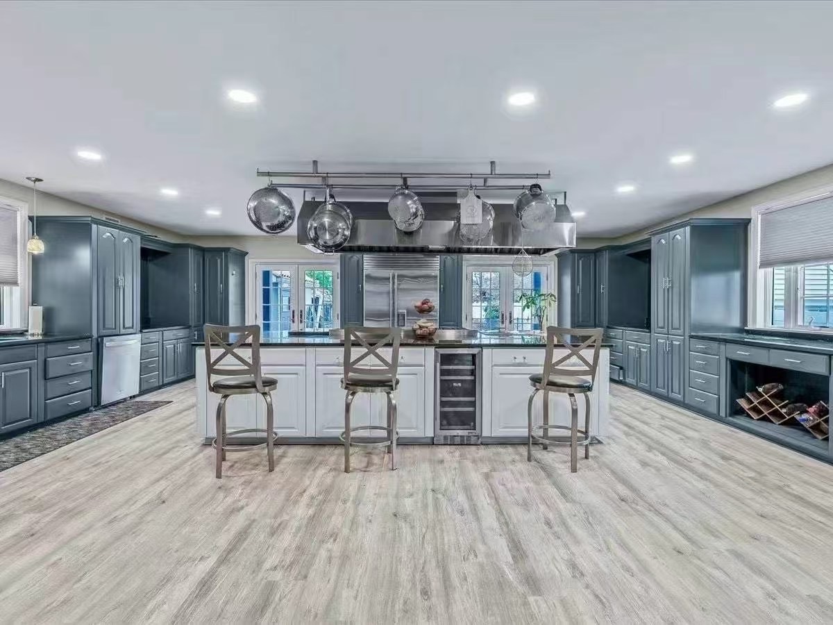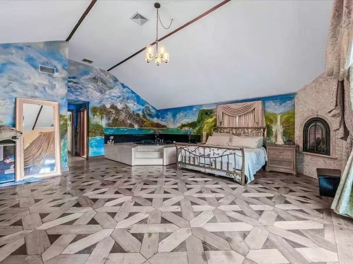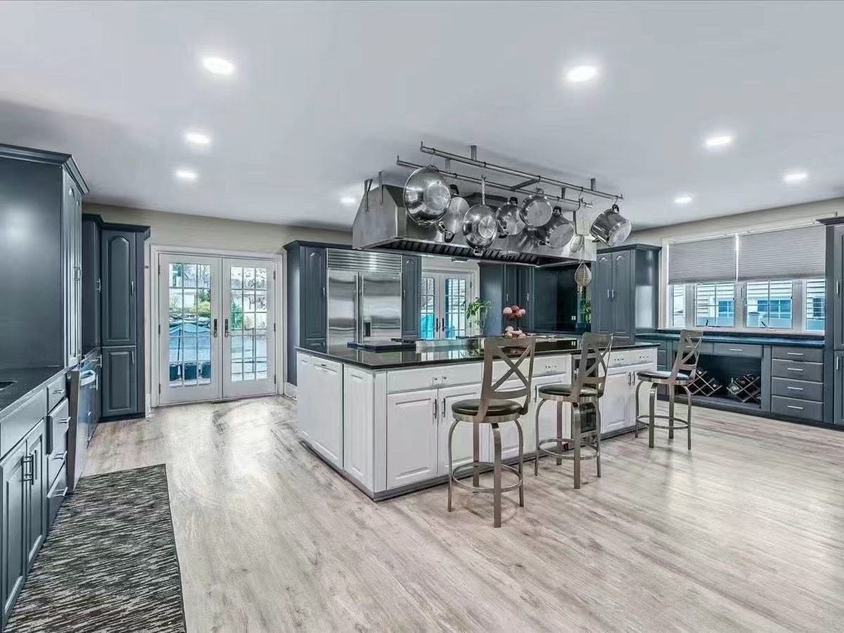 定制悬浮楼梯,24k 金吊灯,全屋进口天然石材饰面,中央空调,带湿吧的地下室,独立车库门控车道等更多设施。全屋升级花费超100 万美金,必须亲自来看,每一处都是细节。