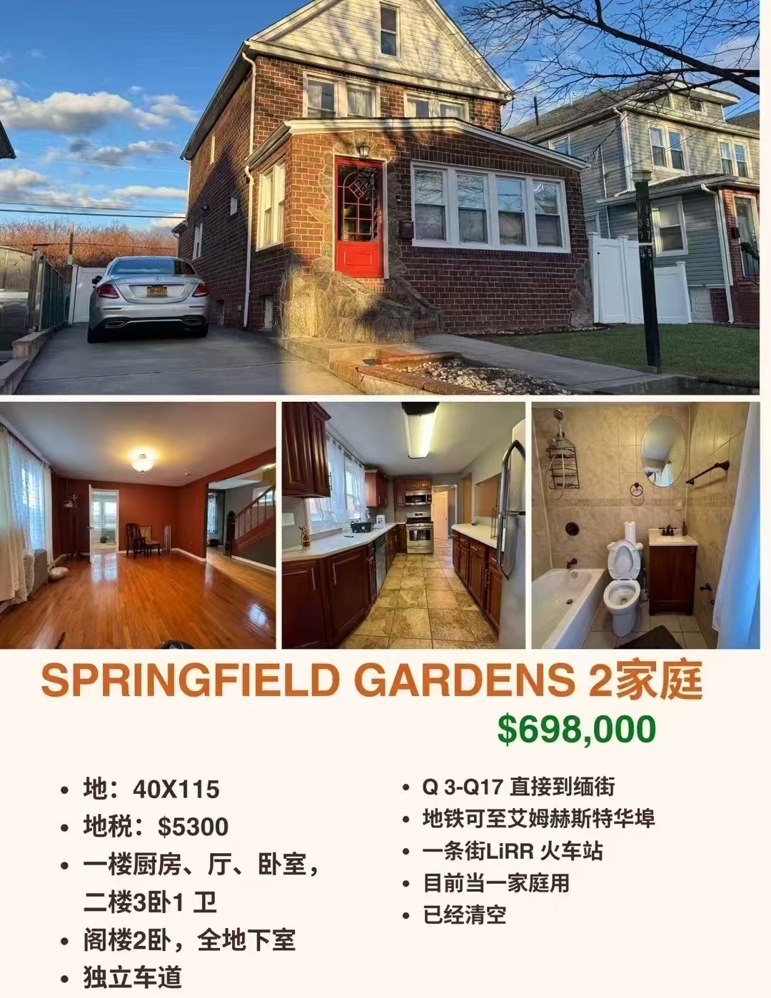 纽约皇后区房子出售买卖网Queens NY Residential新上市皇后区房屋住宅出售网皇后区近JFK独立全砖合法CO为2家庭Bedell St, Springfield Gardens, NY 11413💰仅售:$69.8 万(可贷款)又是一栋白菜价!屋主远迁返乡急售!目前当一家庭用. 已经清空!随时约看!仅距离法拉盛20余分钟,Q 3-Q17 直接到缅街,地铁可至艾姆赫斯特华埠!走路🚶➡️几分钟可至火车站LiRR通往全市!💎地:4600尺,地税:$5300💎一楼厨房、厅、卧室,二楼3卧1 卫💎阁楼2卧!全地下室💎独立车道大后院可泊数部车. 内部状况不错,仅需表面装修!917 293 8698