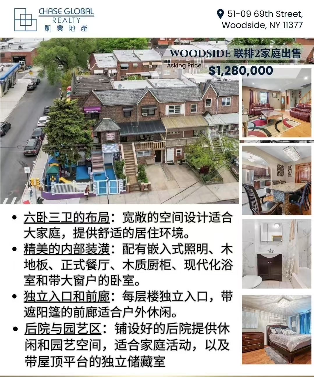 纽约皇后区木边房子出售Woodside Queens NY新上市木边房屋独家出售买卖🚩凯业地产2家庭房源Woodside 联排2家庭售128万