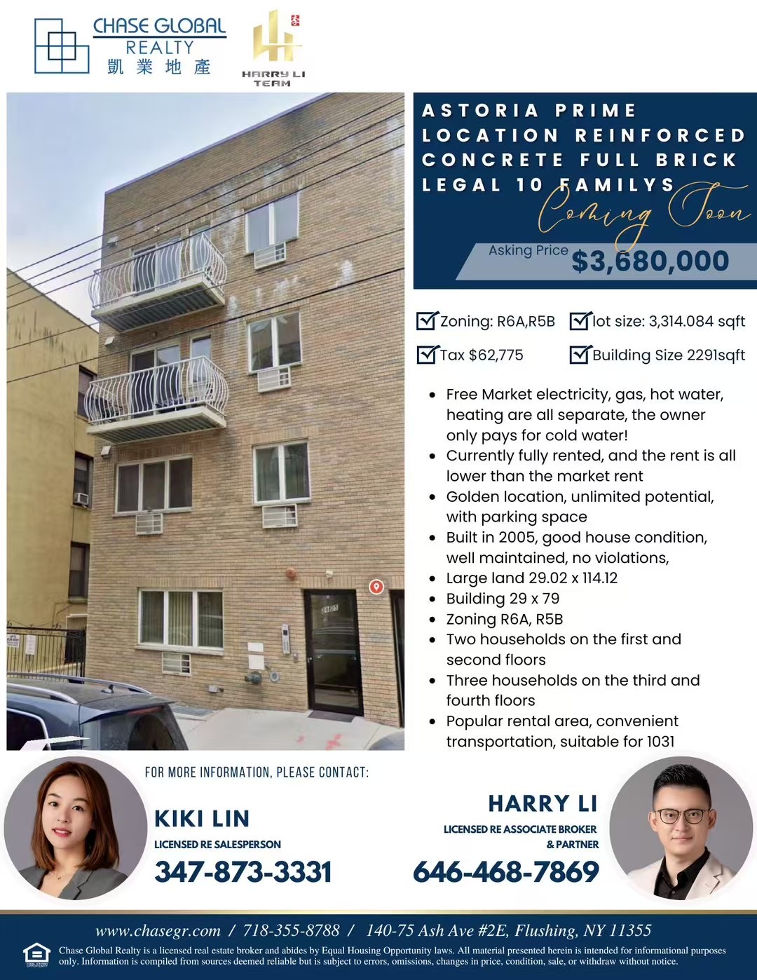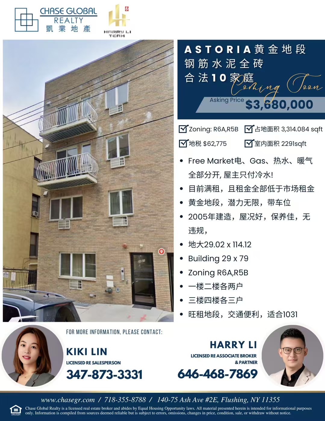 纽约皇后区阿士多利亚房子出售Astoria Queens NY新上市阿士多利亚房屋独家出售买卖🔥Coming Soon!即将上市!独家代理!抢先看!欧洲建商!Astoria黄金地段钢筋水泥全砖合法🔟家庭🔥$368万💰Free Market💎电、Gas、热水、暖气全部分开,屋主只付冷水❗️目前满租,且租金全部低于市场租金,黄金地段,潜力无限,带车位,2005年建造,屋况好,保养佳,无违规,地大29.02 x 114.12,Building 29 x 79,Zoning R6A,R5B,旺租地段,交通便利,适合1031👍欢迎同行精英们转发与合作🤝(专业照片与视频在整理中📹请凭资金证明私信获取详情⚠️)