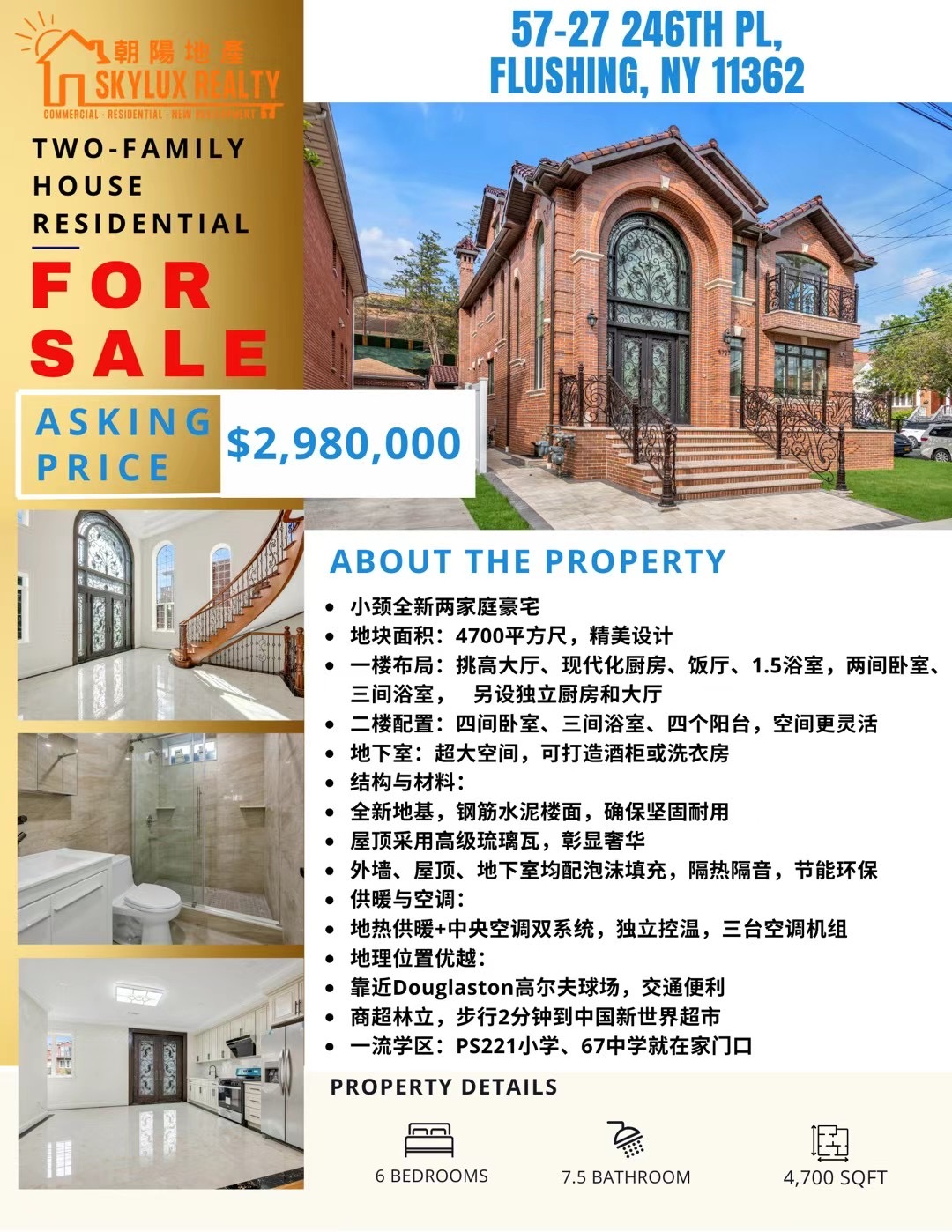 🔥位于小颈中心,位置极佳,周围豪宅耸立,环境优美,是最为安全漂亮的居住地,靠近Douglaston高尔夫球场。生活交通极其方便,各种商店、超市近在咫尺,2分钟到达中国新世界超市。