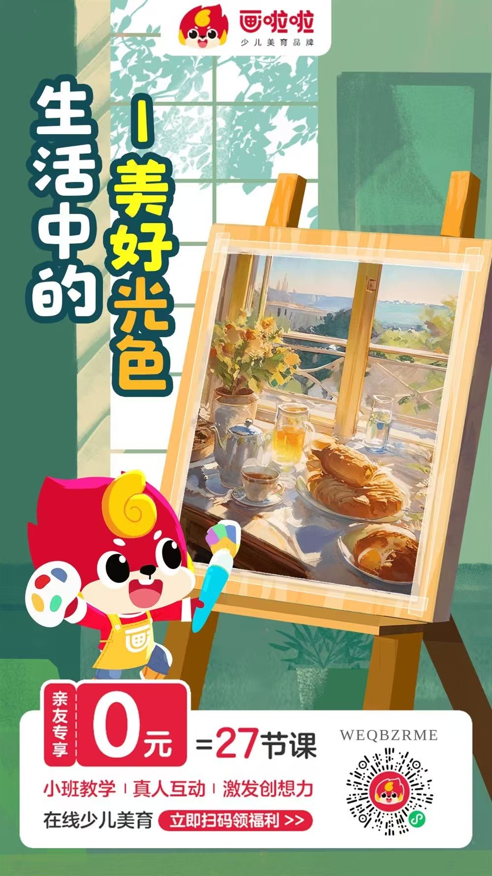 我家小朋友的美术课🎨,扫码可以免费上一节老师在线指导的直播课随时可学~[玫瑰]