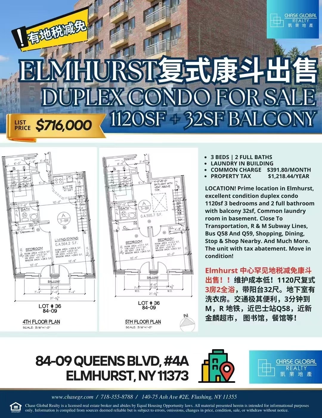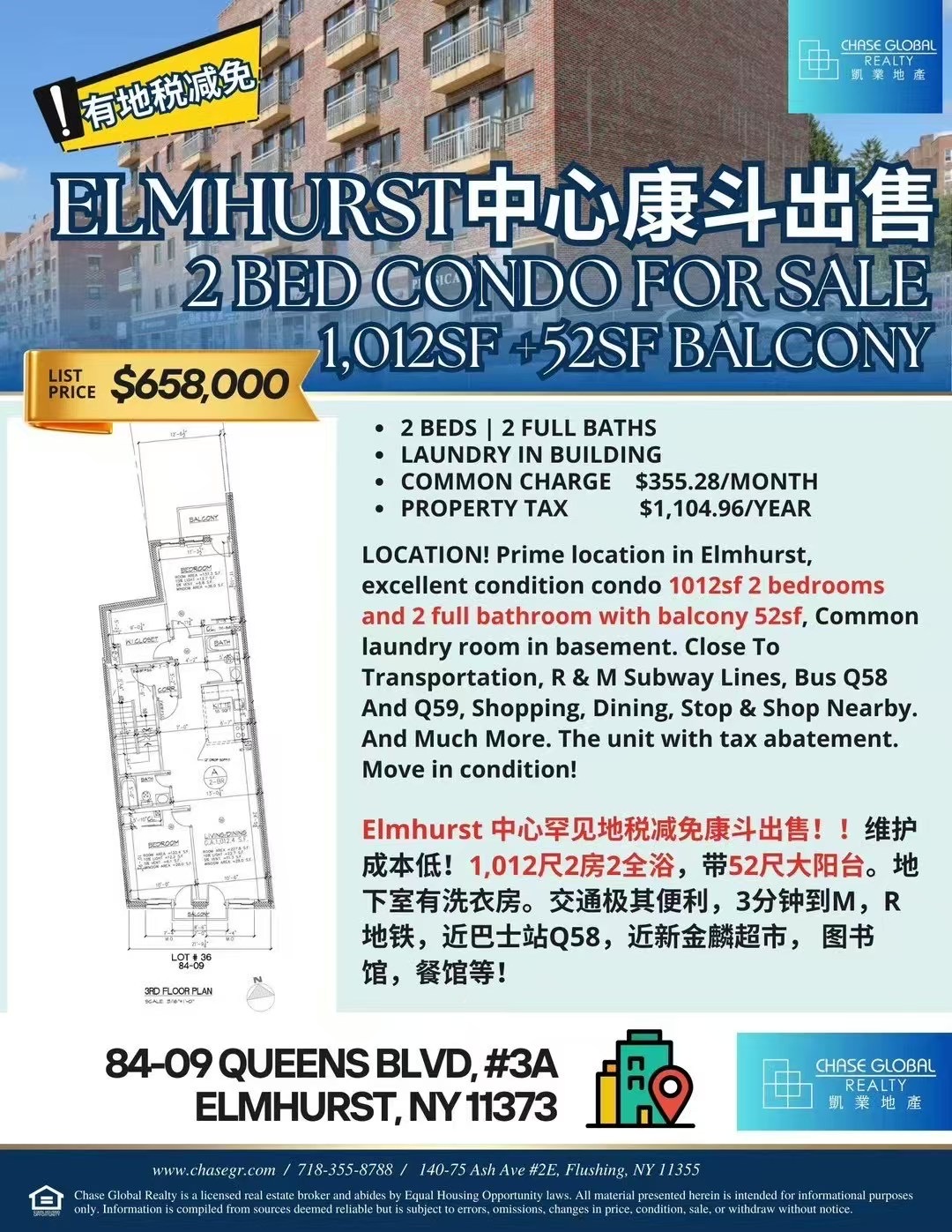 纽约艾姆赫斯特豪华康斗出售Elmhurst Condo NY新上市艾姆赫斯特高级康斗出售艾姆赫斯特豪华康斗独家出售买卖明天早上11点可以看Elmhurst中心 2 Condo