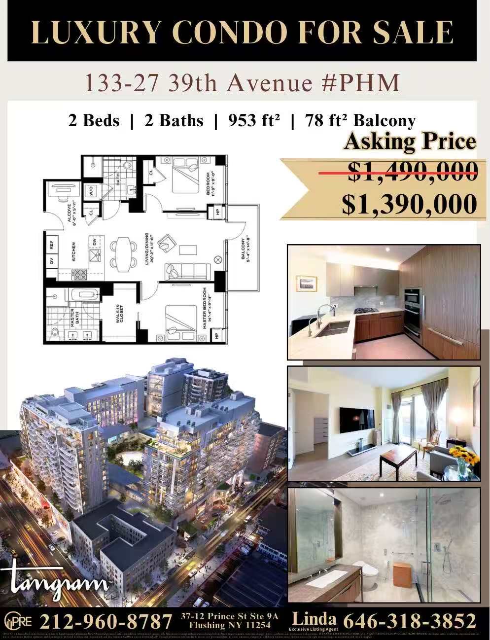 纽约法拉盛豪华公寓出售 Flushing Luxury Coop NY新上市法拉盛高级合作公寓大楼出售法拉盛高大上公寓独家出售买卖 抓住机会,屋主直降10万美金!!🎉 🎉 Tangram 2房2卫豪华公寓