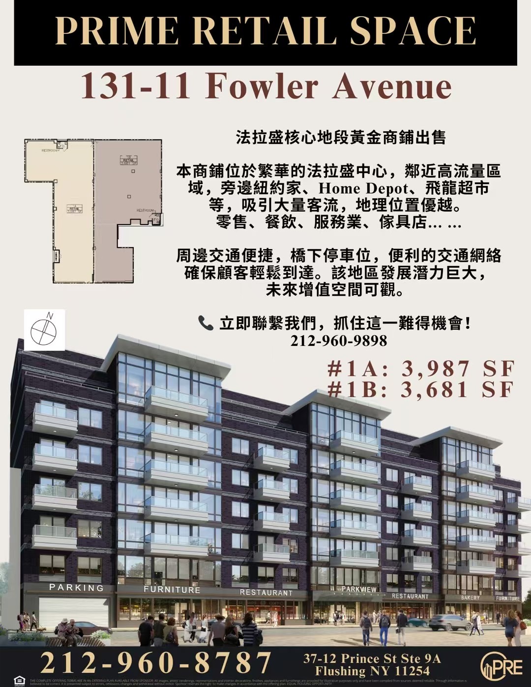 法拉盛核心地段黃金商鋪出售本商鋪位於繁華的法拉盛中心,鄰近高流量區域,旁邊紐約家、Home Depot、飛龍超市等,吸引大量客流,地理位置優越。