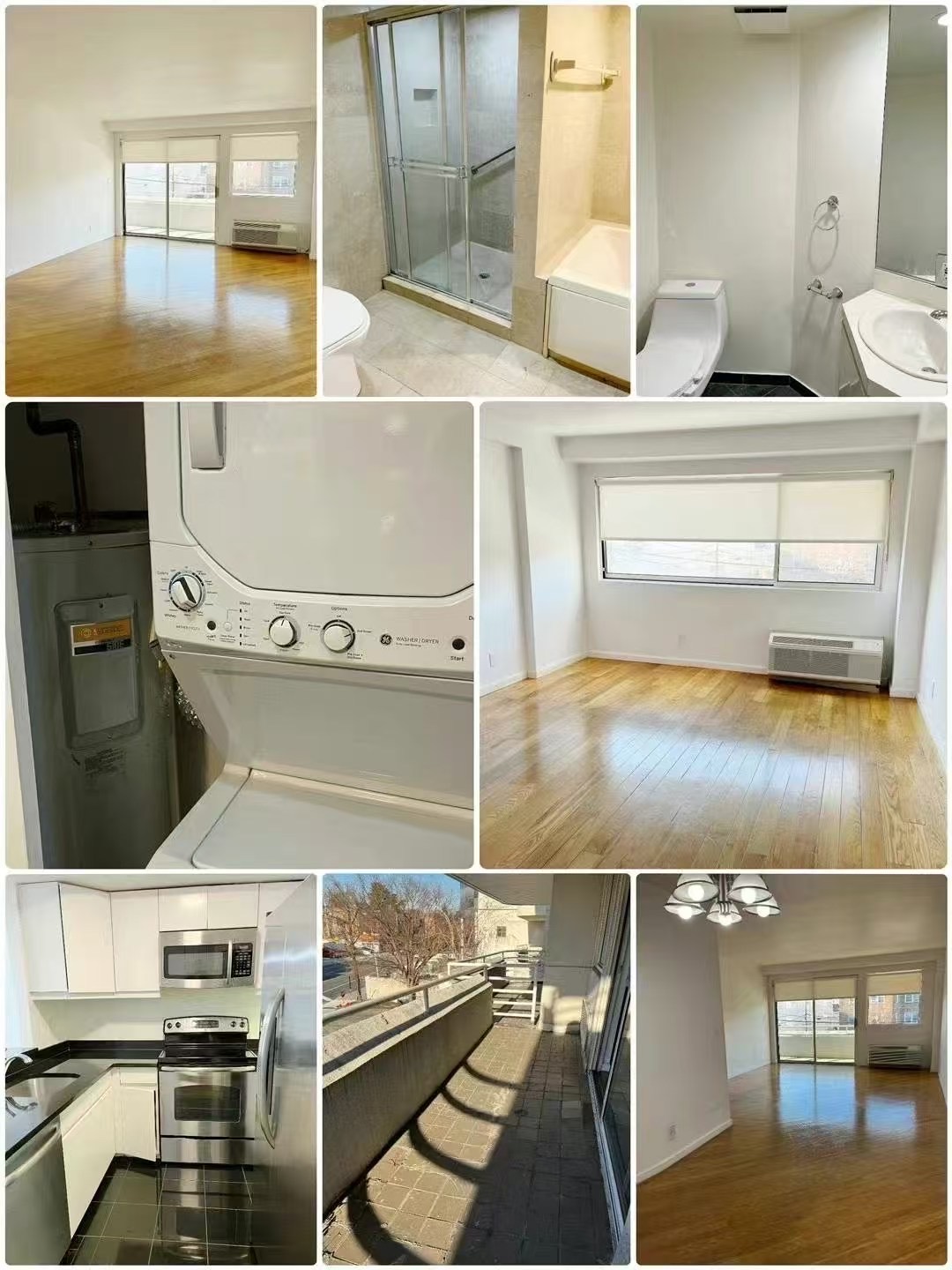🏢大楼24小时门卫,一房一厅两卫➕阳台,面积910多尺,大窗设计,视野和采光都极好👍,实木地板,walk in closet。室内洗衣机烘干机!一室内车位,楼内有健身房!