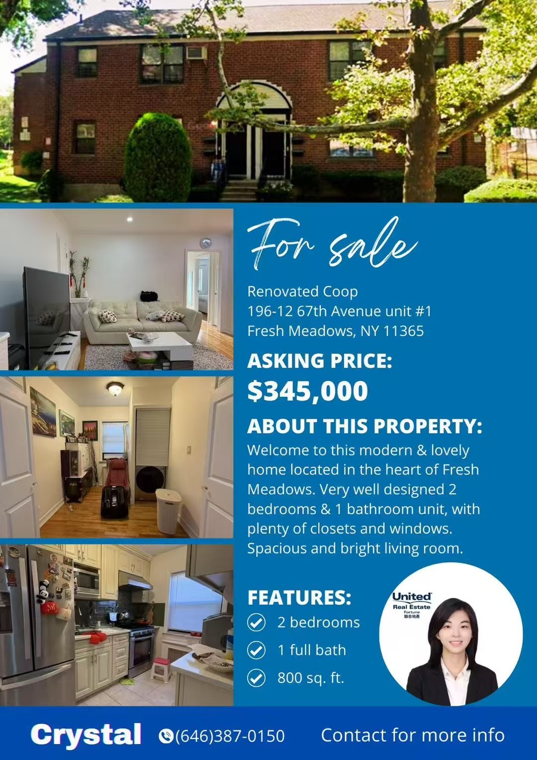 纽约新鲜草原公寓出售 Fresh meadows Coop NY新上市新鲜草原公寓出售新鲜草原豪华公寓独家预售买卖 新上市!新鲜草原Coop 两房一厅出售!多窗多壁橱。阳光充足,南北通透,客厅宽敞明亮, 卧室温馨舒适. 屋况佳,带洗烘机!