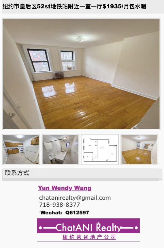预约看房联系电话:718-938-8377; 微信: Q612597