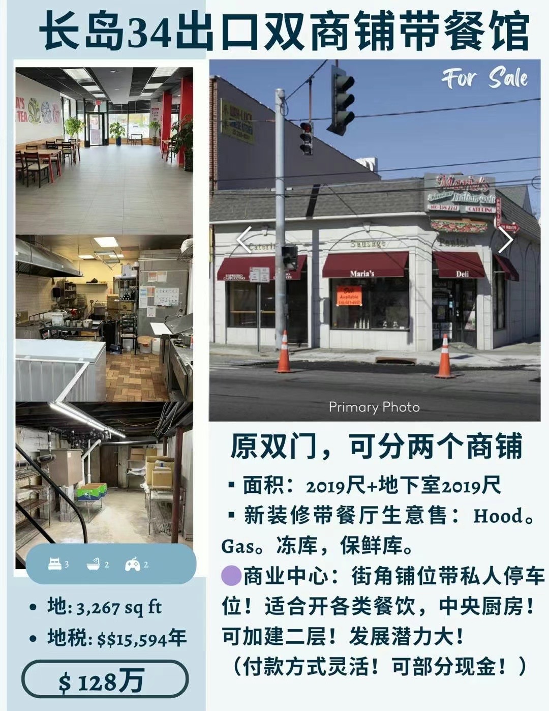 🆕长岛34出口双商业楼带新装修餐厅生意售128万💟