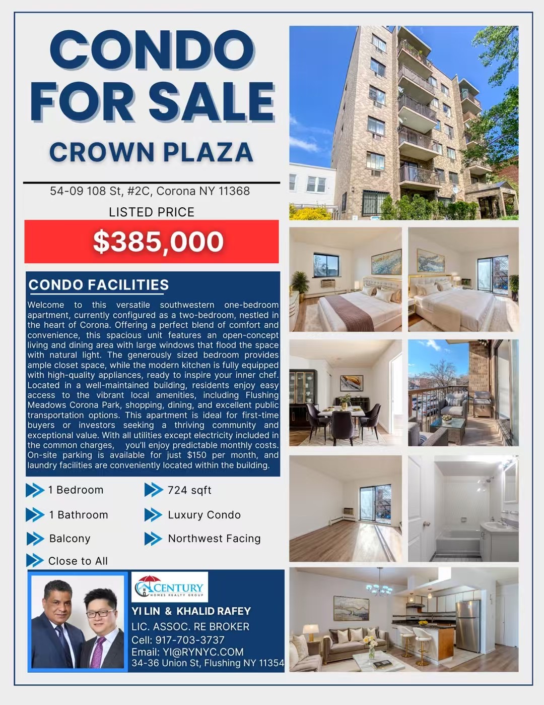 纽约可乐娜康斗出售Corona Condo NY 新上市可乐娜康斗住宅出售可乐娜康斗独家出售买卖新上市: 🏠这是一个位于Corona中心的一房一厅condo信息,具体如下: