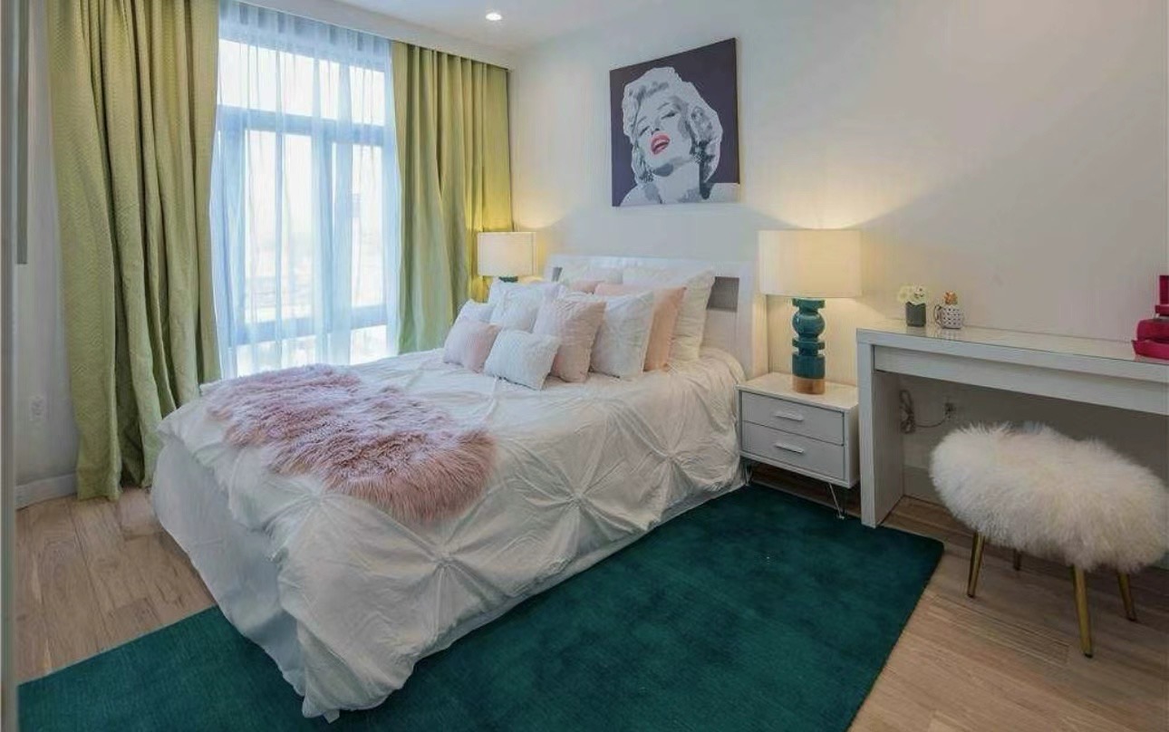 五年新大楼,三星双开门冰箱,三星洗碗机,高端电器,中央空调,有阳台对着公园安静不吵,步行8分钟至缅街地铁站,附近餐馆、超市、银行、方便一切,可小宠!