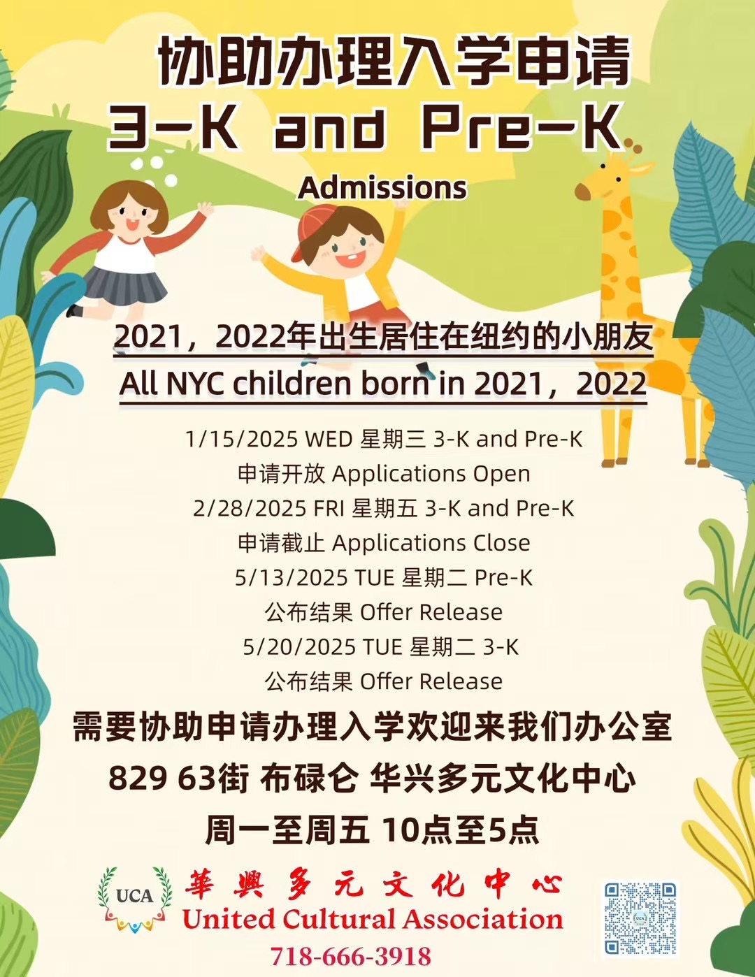协助办理入学申请3-K and Pre-K.829 63街 布碌仑 华兴多元文化中心周一至周五 10点至5点
