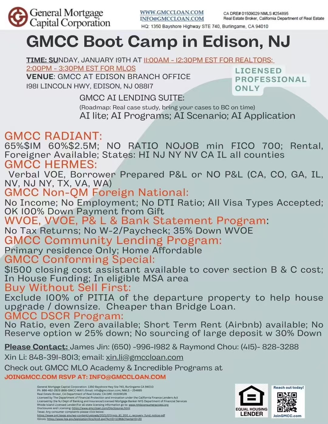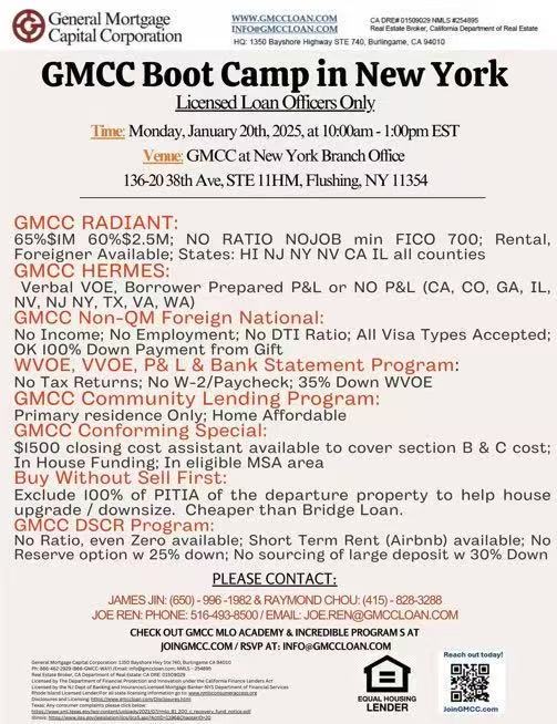 纽约贷款经纪new york housing finance agency纽约经验资深贷款专员今天 1-10-2025 11am , GMCC万通贷款 新泽西Edison 分行举行贷款新产品发布会。受到当地房地产专家们热烈欢迎, 旧雨新知 可以帮到更多消费者买卖房产投资需求。以房养学。甚至帮助留学生无工作亦可买房投资甚至自住无信用亦可