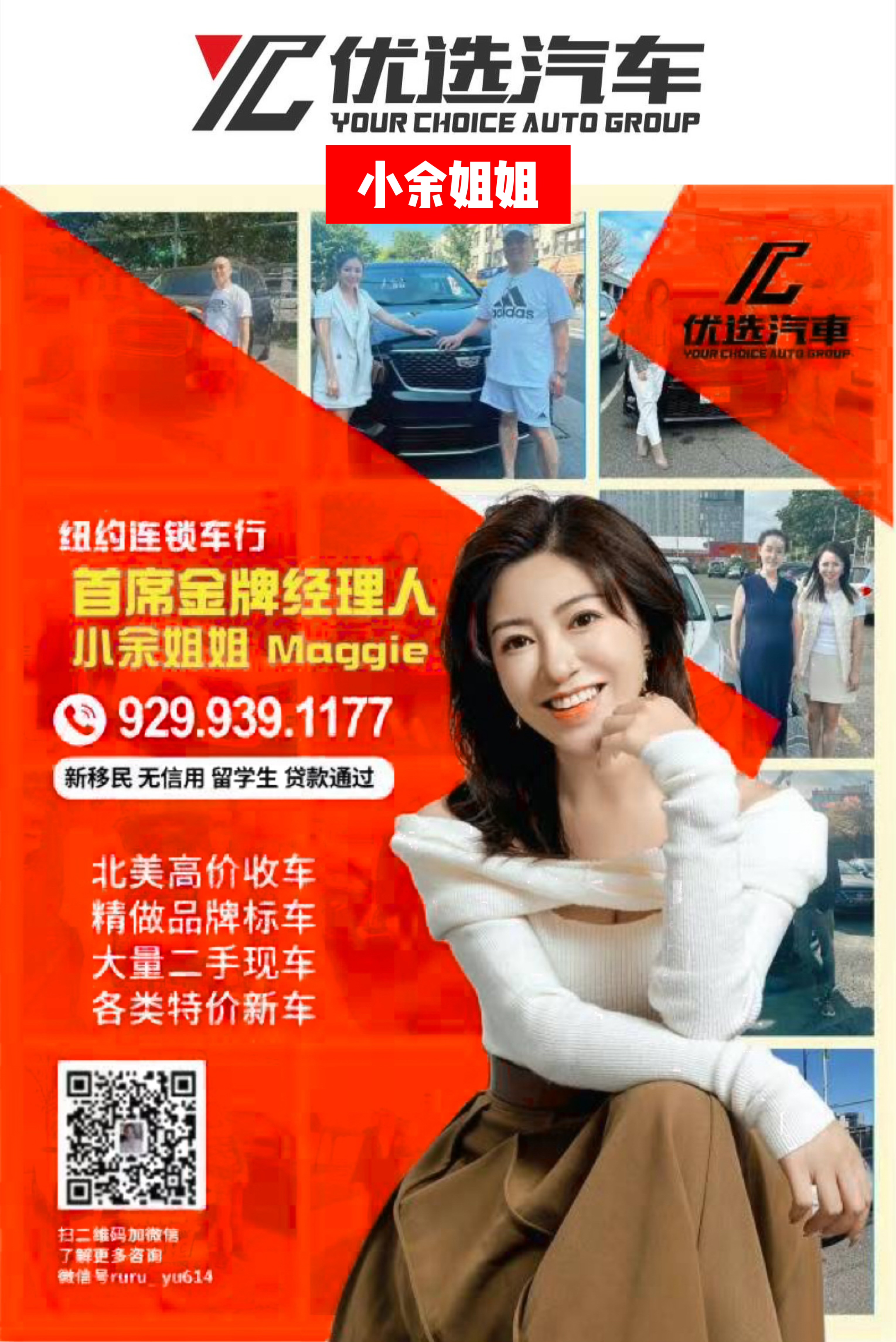 优选汽车Your Choice Auto Group 纽约二手车 法拉盛优选汽车销售买卖金牌销冠Maggie余 纽约优选汽车二手买卖 纽约新车销售华人优选汽车出售 代理汽车品牌 大量二手车供您选择 ,肯定有一辆车能满足您的需求和预算!大量1万美金以下二手车库存 免费估价,现金高价收购您的二手车 所有二手车提供 100 天保养修理 汽车维修保养 一条龙服务.车祸保险理赔、纽约车祸保险理赔专家,专业修理厂为您修复汽车!(新车,二手车,高价收车!纽约TLC车牌转让出租,留学生新移民驾照上牌) 买卖车认准好口碑!价格透明,无隐藏费用,信誉第一,专业售后更放心!华人销售 优选汽车-Your Choice Auto Group 优选汽车华人买卖销售专业好体验 联系:Maggie 余 联系电话:929-939-1177 微信:ruru_yu614 欢迎您来预定法拉盛地址:167-04 Northern Boulevard, FLUSHING NY 11354