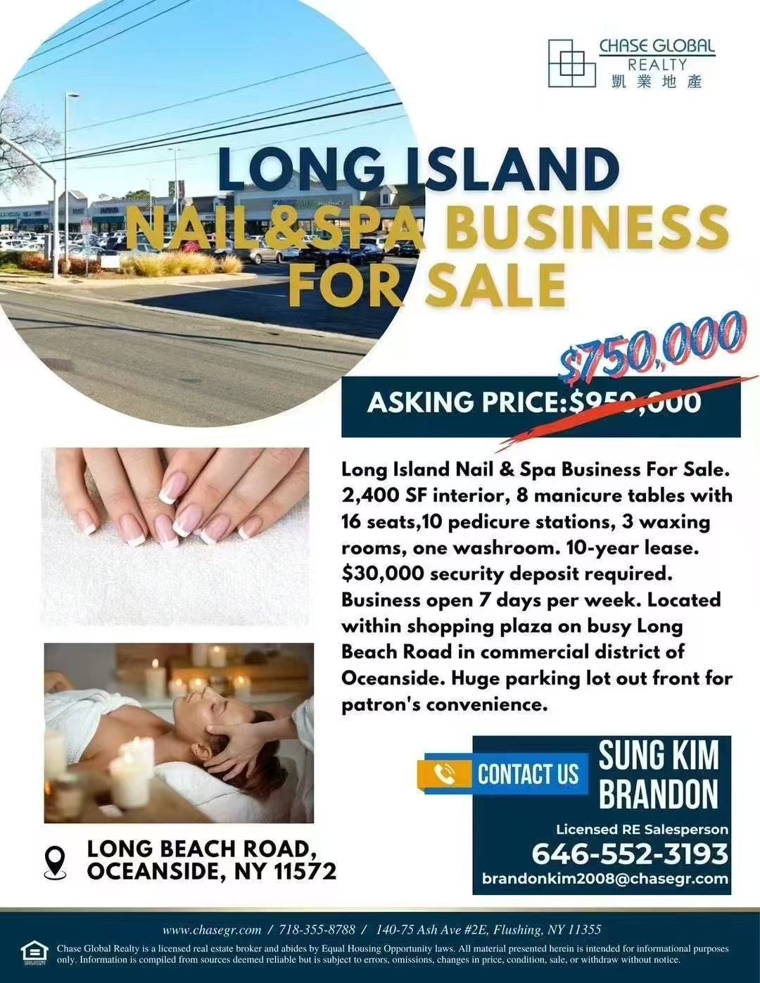 🔥凯业地产最新上市🔥长岛大型美甲店转让 💰大降价售75万