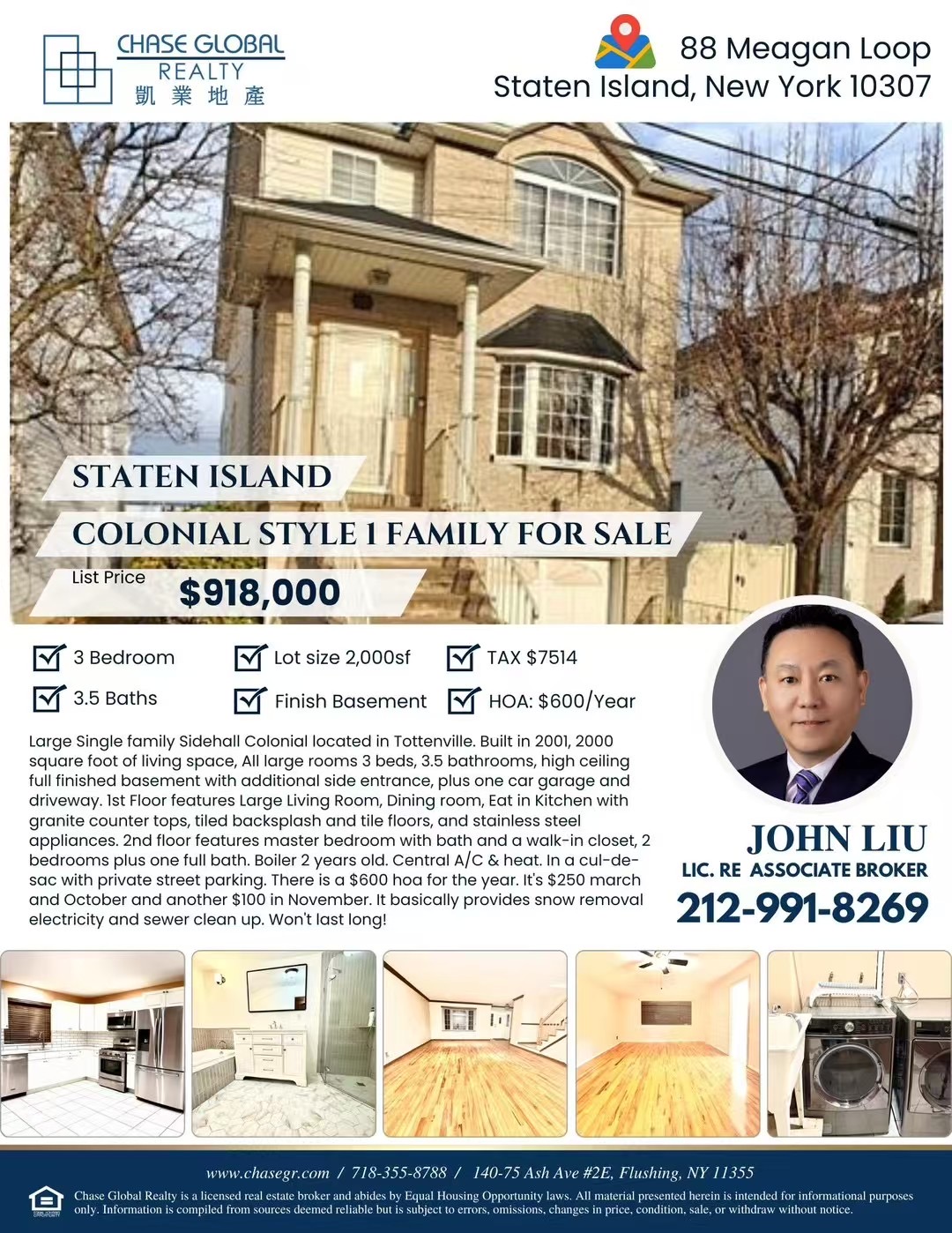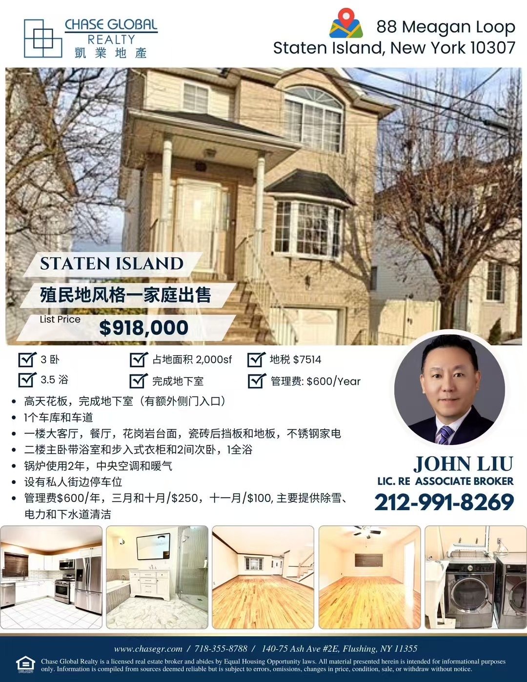 纽约史丹顿岛房子出售 华人区Staten Island NY 新上市史丹顿岛房屋住宅出售史丹顿岛豪宅独家出售买卖🔥 凯业地产Staten Island殖民地风格一家庭出售🔥💰售价$91万8💰