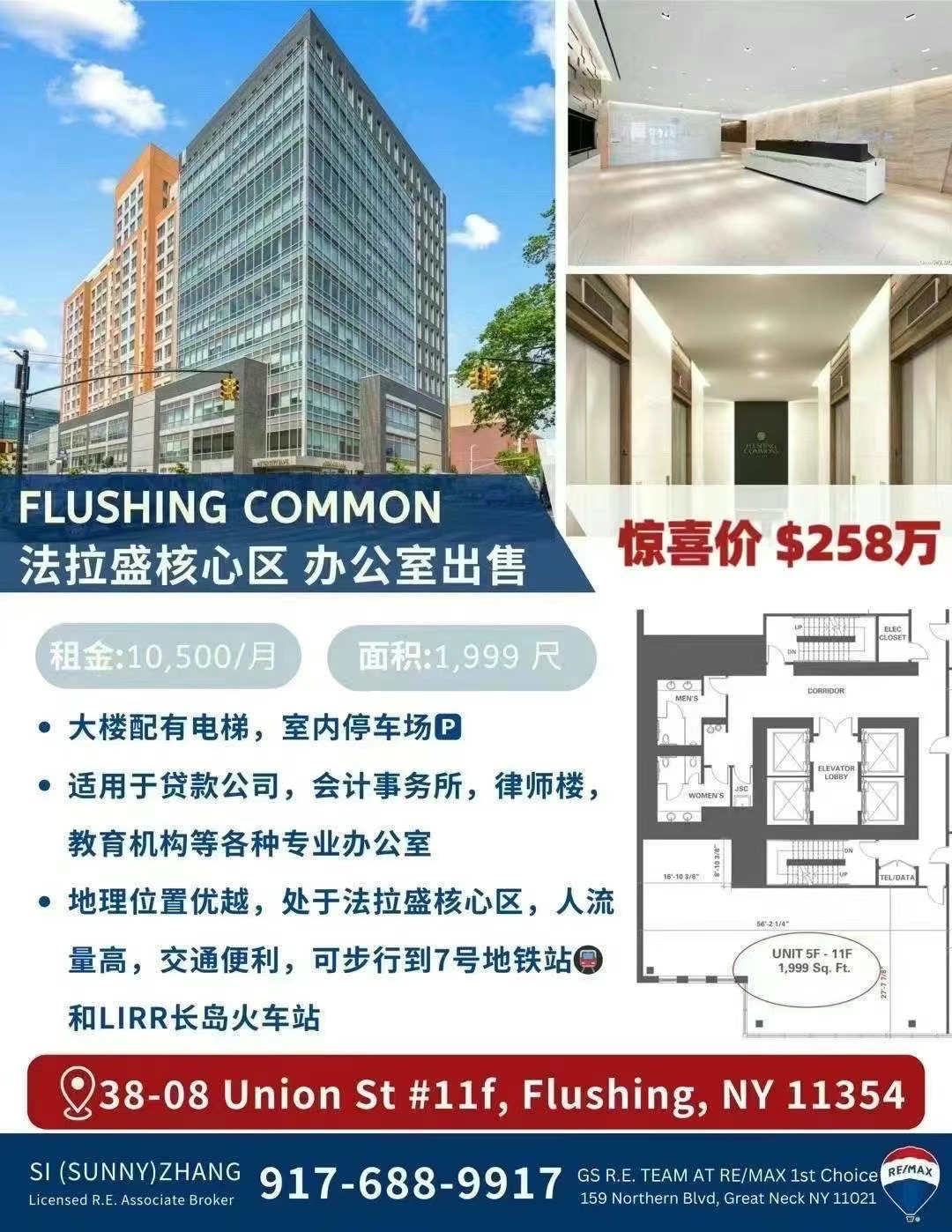 独家代理👏🏼 惊喜价💰258万❗️🏢法拉盛 Flushing commons地标级建筑 25年减地税 高级办公楼出售 适合各种专业办公室💎巨大落地窗 办公室已装修好📍38-08 Union St #11F Flushing, NY 11354欢迎合作☎️