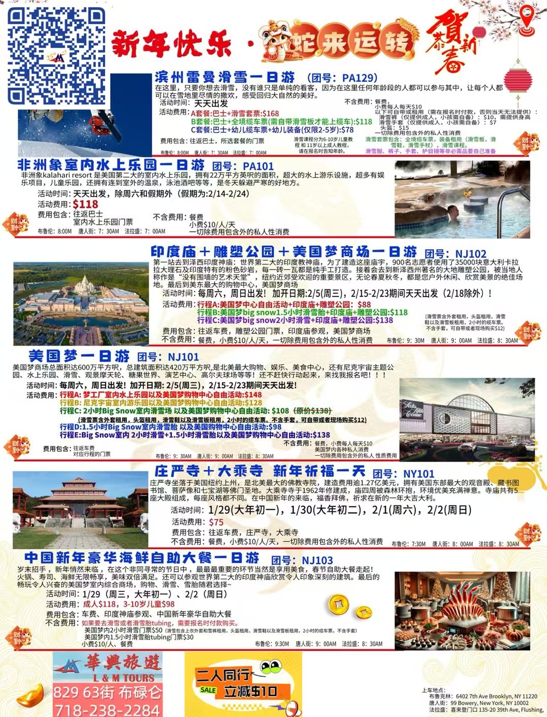 费用包含:车费、印度神庙参观、中国新年豪华自助大餐不含费用:如果要去滑雪或者滑雪胎tubing,需要报名时付款购买。