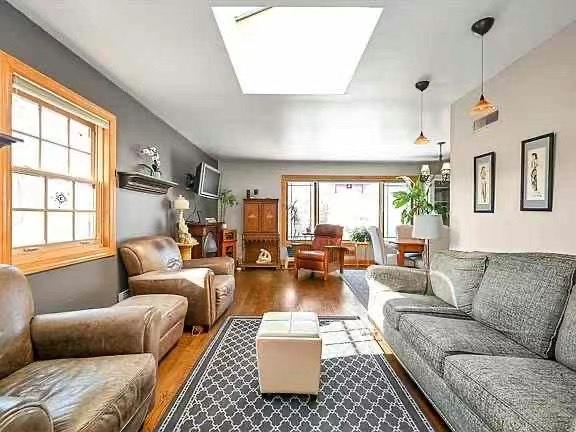 顶层拥有3间卧室和2.5间浴室。光亮的硬木地板流畅地贯穿整个住宅,增强了其温馨宜人的氛围。时尚的用餐厨房经过精心设计,既实用又美观。