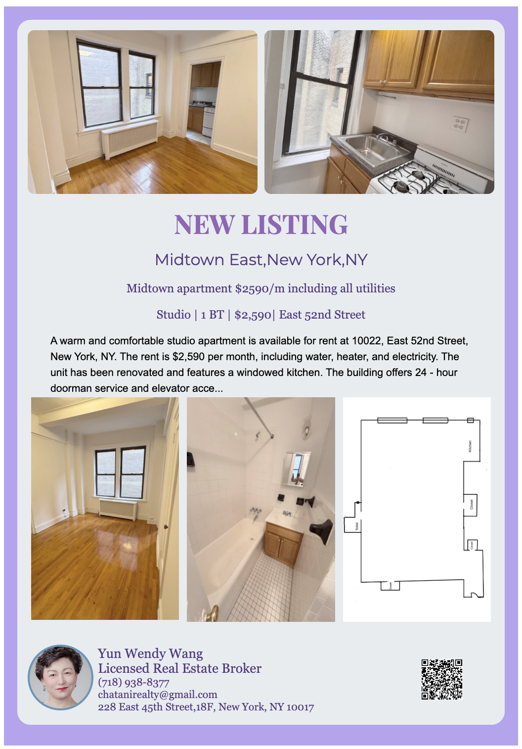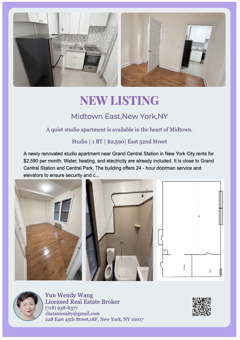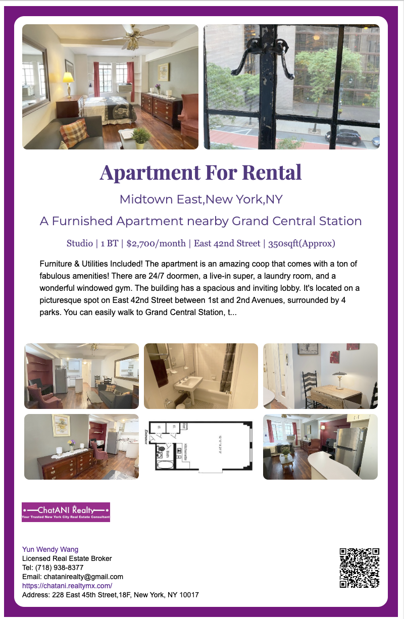 - 电话:Yun Wendy Wang, Agent at ChatANI Realty,718 - 938 - 8377
