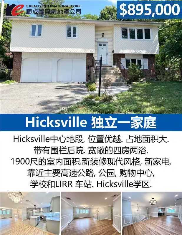 长岛希克斯维尔房子出售Hicksville NY新上市长岛希克斯维尔学区房屋独家出售买卖🔥Hicksville 独立一家庭🌟4房 2浴