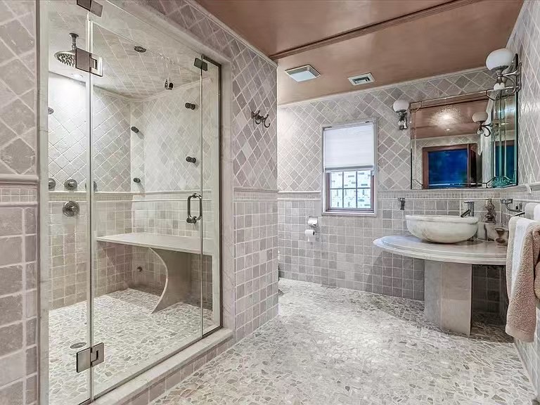 盐水加热游泳池及按摩浴缸、进口石材建pizza烤炉/烧烤设施。超豪华行政主厨厨房配有 Sub-Zero 冰箱、2 个 Wolf 烤箱、6 个炉灶、蒸箱、深油炸锅、12 英尺排气罩等大功率设备。超大主卧室设有天然气壁炉、步入式衣橱、大阳台,以及带蒸汽房的主浴室。