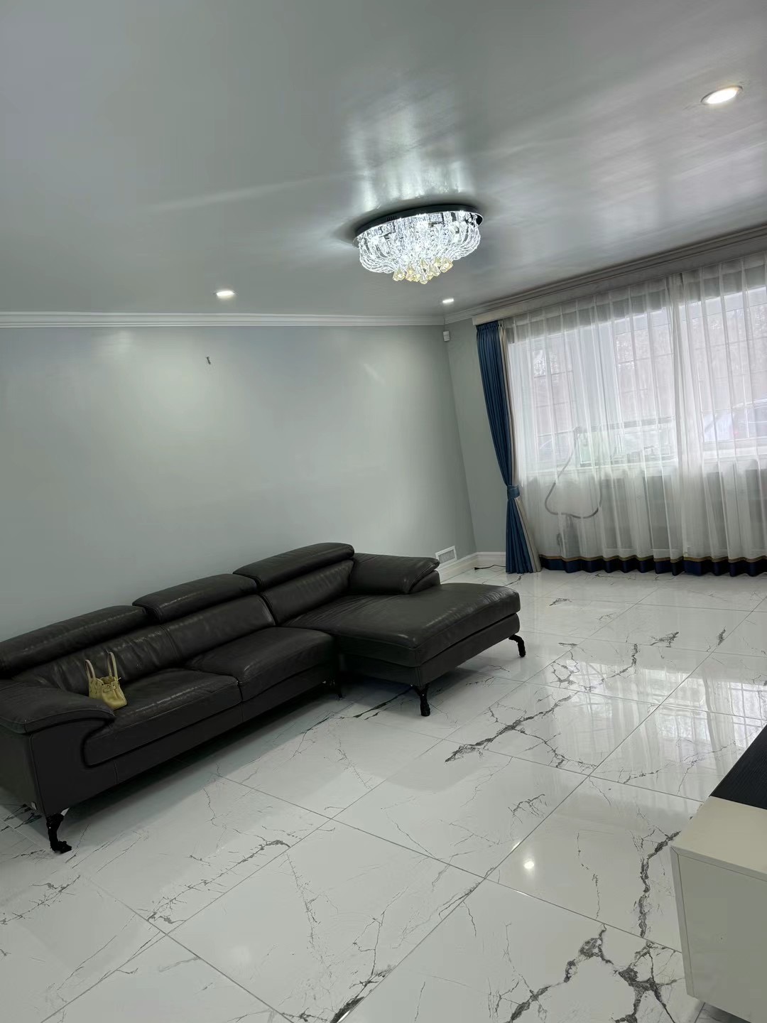全新裡外翻新過 朝南多窗阳光充足 一樓 扩建的餐厨配有天窗,正式的餐厅,带温馨燃气壁炉的书房以及宽敞的客厅 1卧1浴、整层地板均铺设大理石。