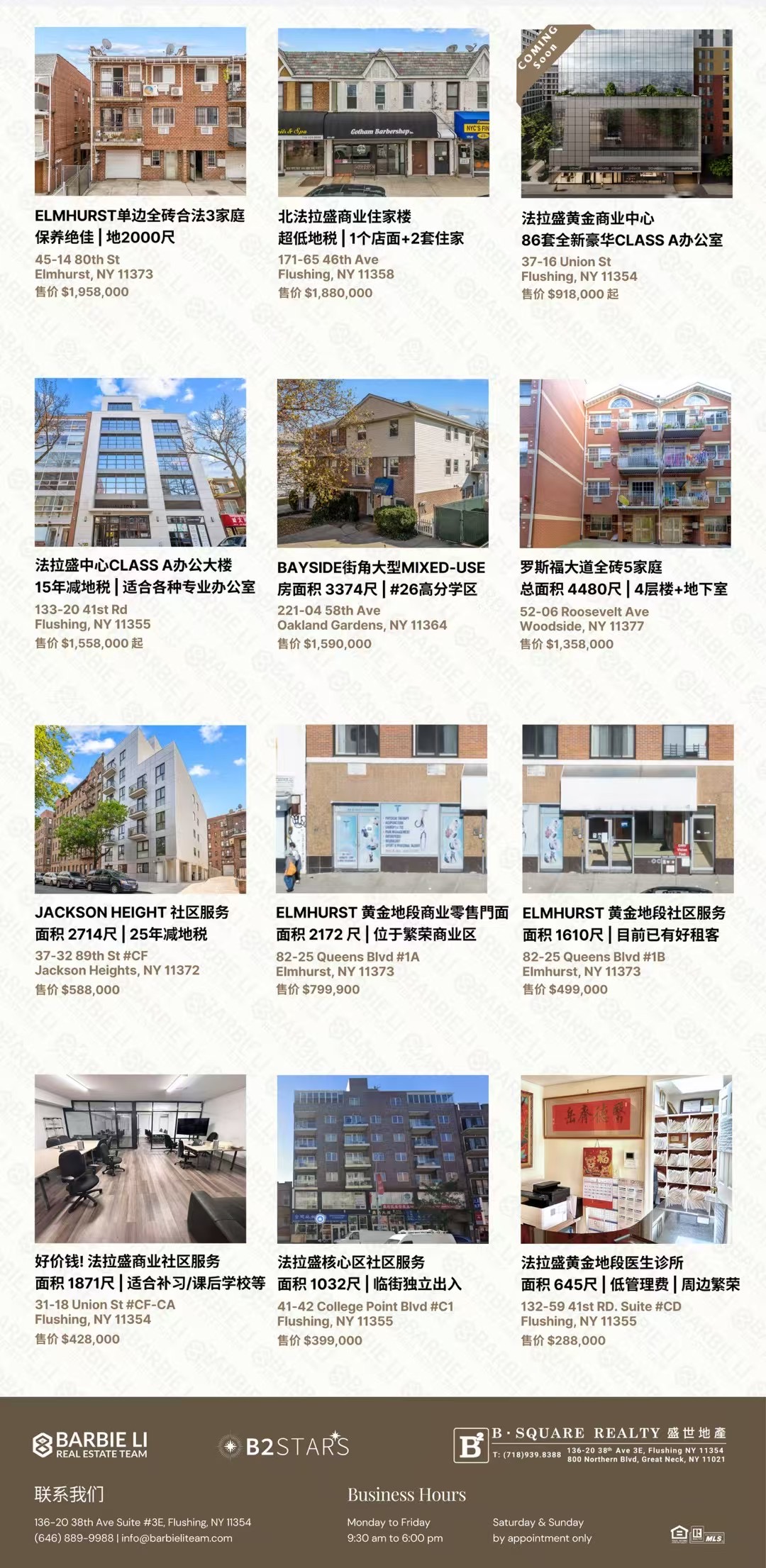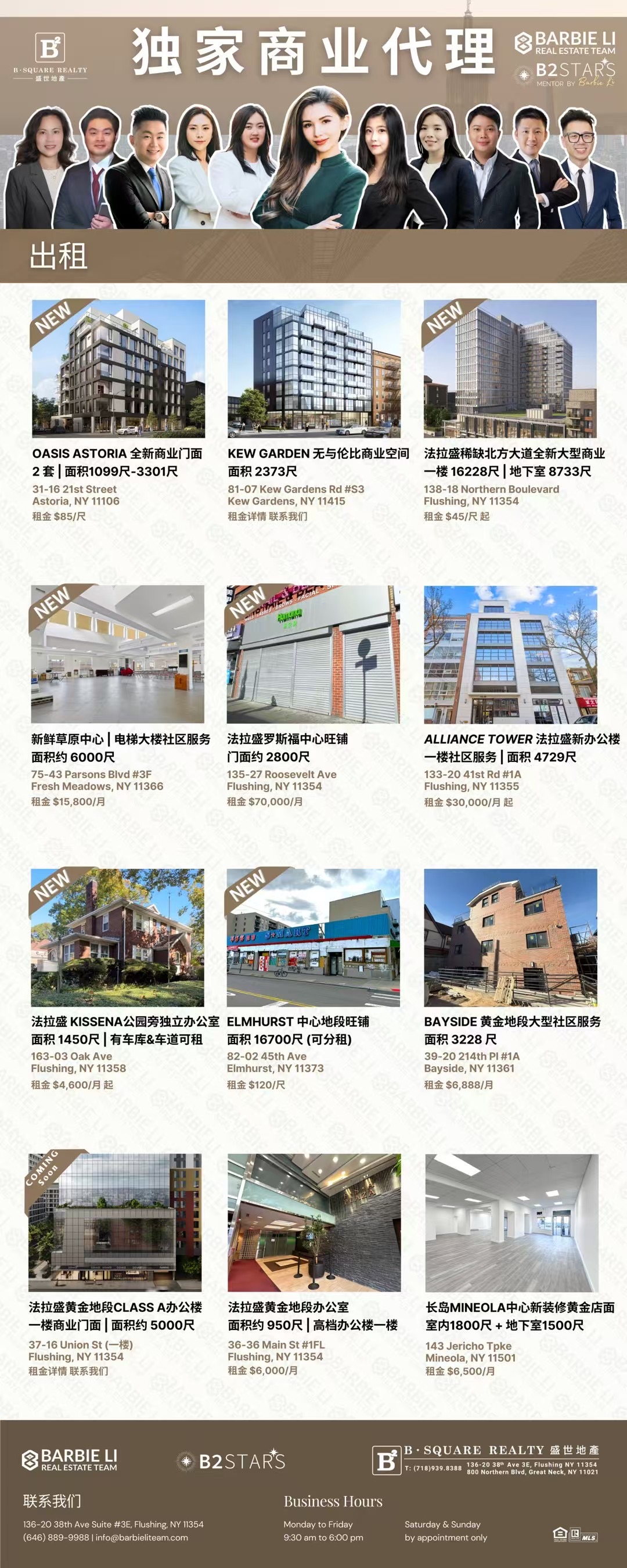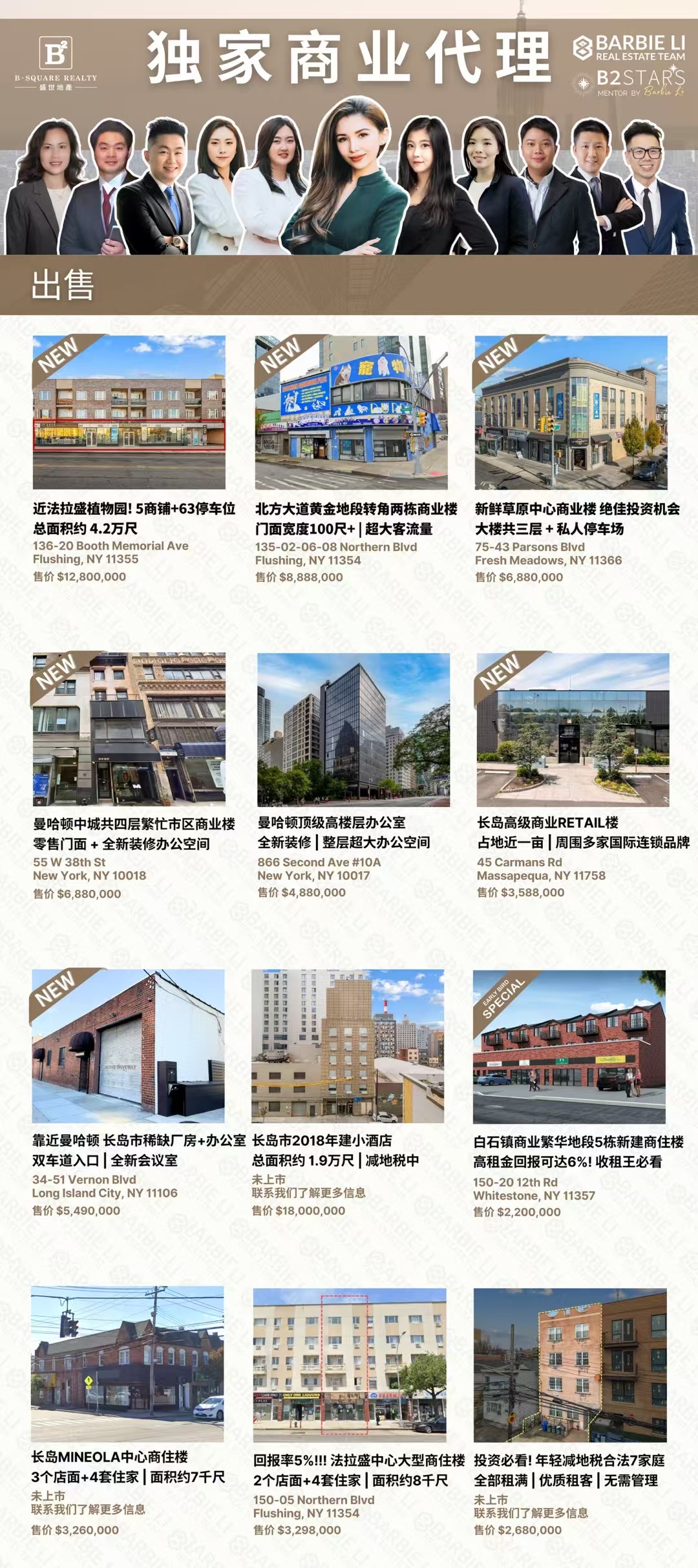 盛世地产 纽约法拉盛盛世地产公司 Barbie Li Team X B2Stars独家代理商业出售商业出租欢迎合作!还有各种未上市商业楼/酒店/建地/门面