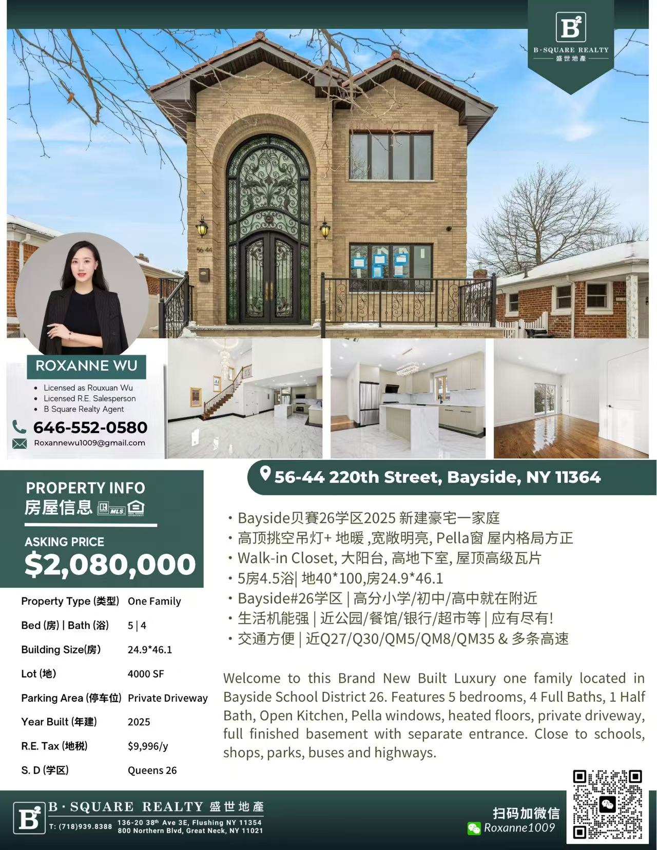 纽约贝赛房子出售Bayside NY新上市 贝赛房屋出售贝赛豪华住宅出售独家代理买卖🆕️ Bayside贝賽26学区2025 新建豪宅一家庭🔥 稀缺房源 机会难得 不要错过!!