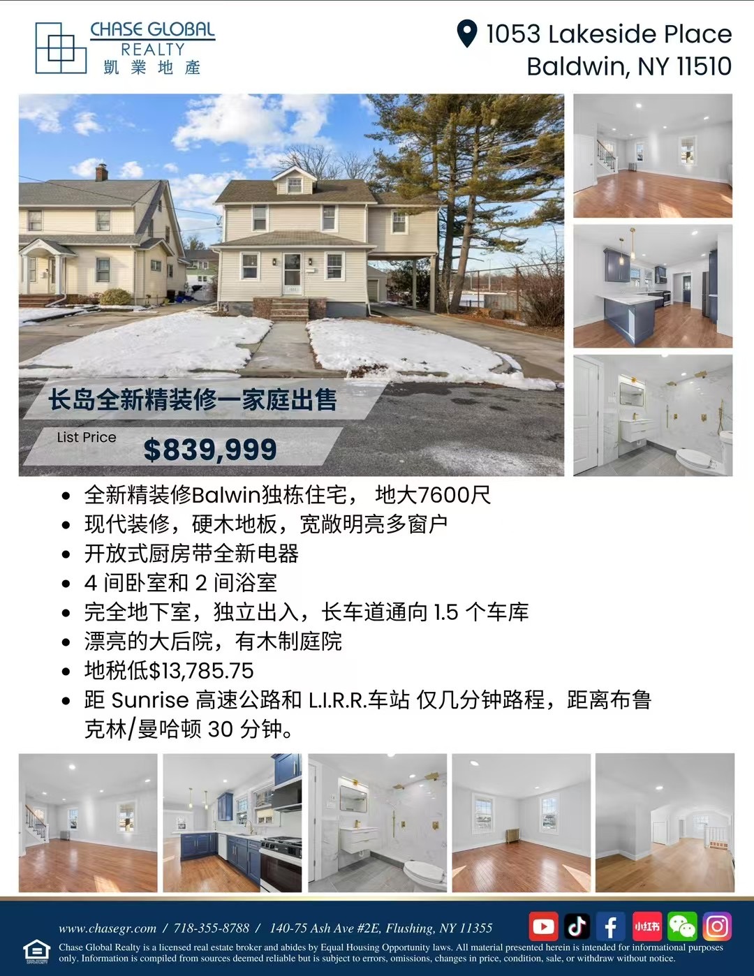 长岛房子出售网Long Island NY新上市长岛房屋住宅出售长岛豪宅独家代理买卖🔥 凯业地产Long Island一家庭出售🔥