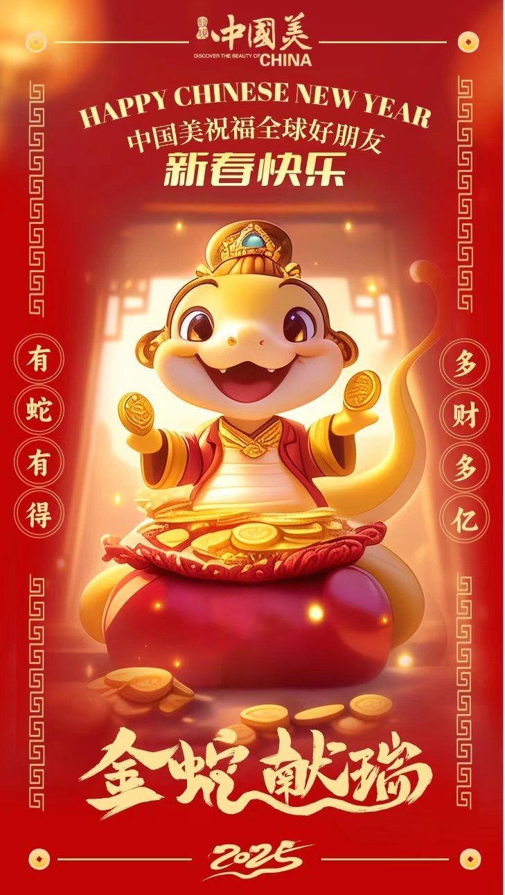 #中国美祝您新春快乐灵蛇献瑞迎新春!值此新春佳节之际,[中国美] 向一直以来关心和支持我们的朋友们致以最诚挚的问候和新春的祝福!