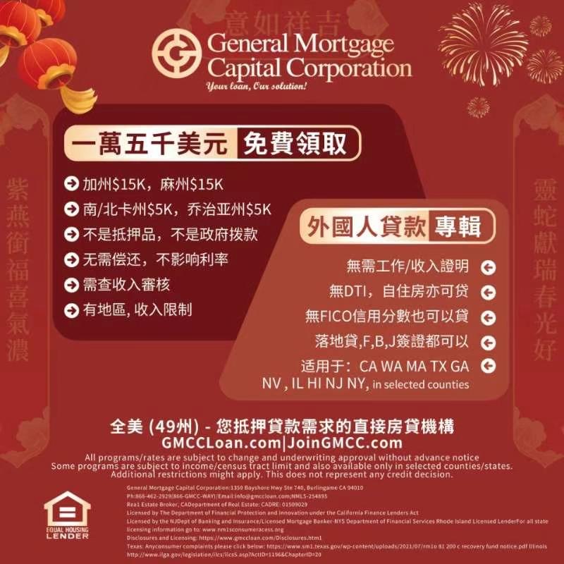 想要购房却担心资金问题?General Mortgage Capital Corporation 为大家带来超值福利: