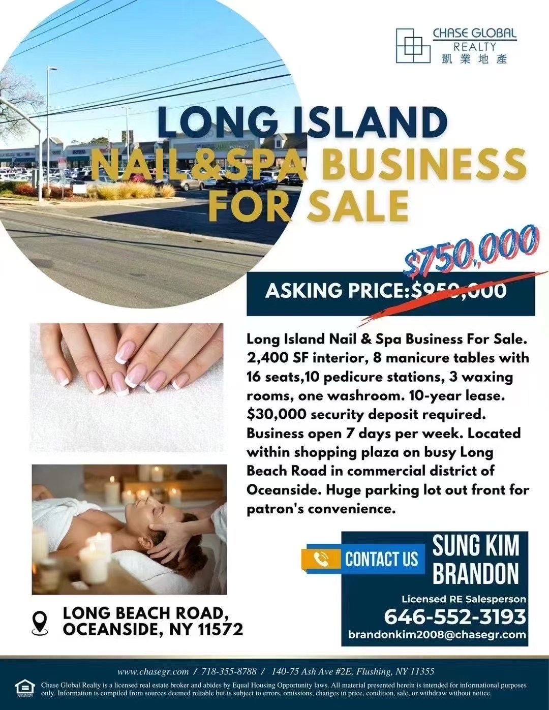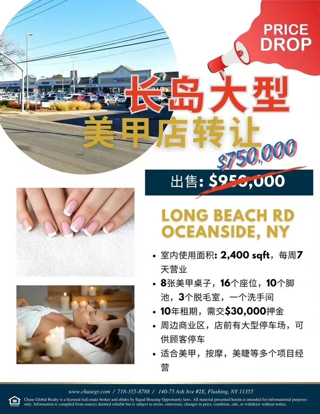 🔥凯业地产最新上市🔥长岛大型美甲店转让 💰大降价售75万