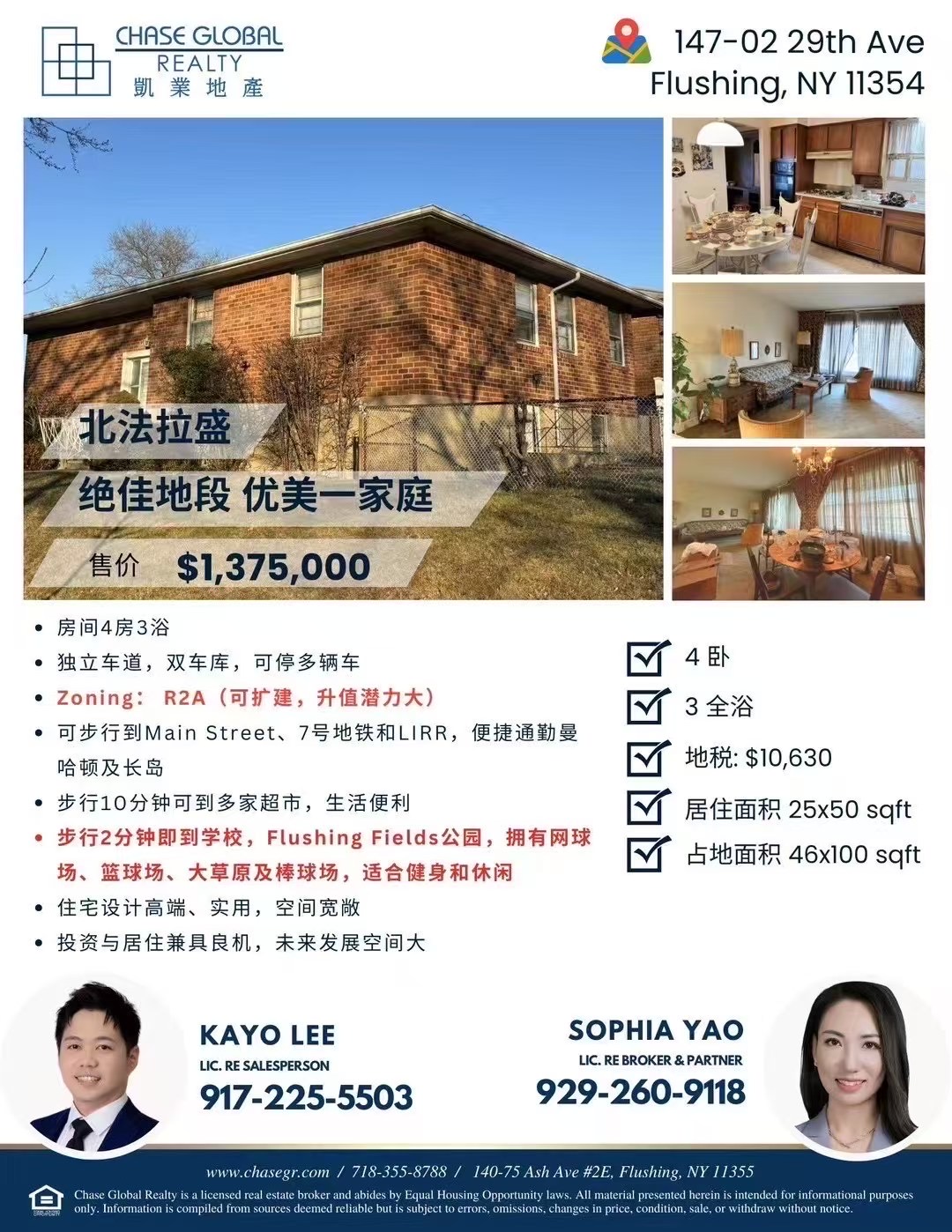🏡 地址:147-02 29th Ave, Flushing, NY 11354