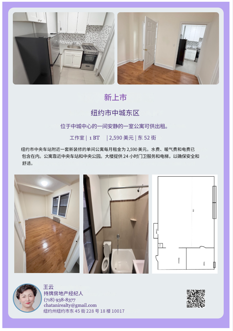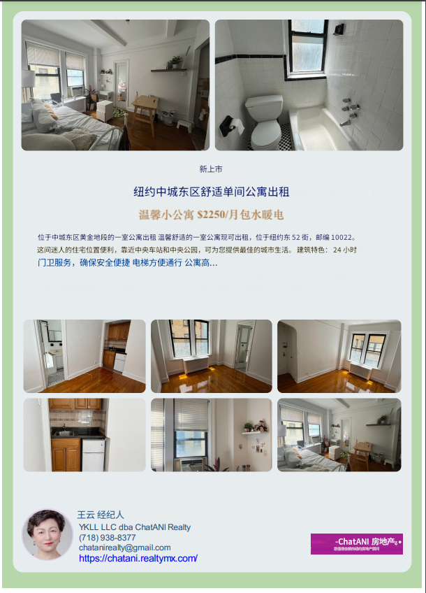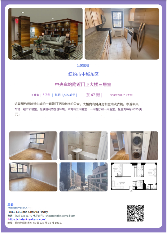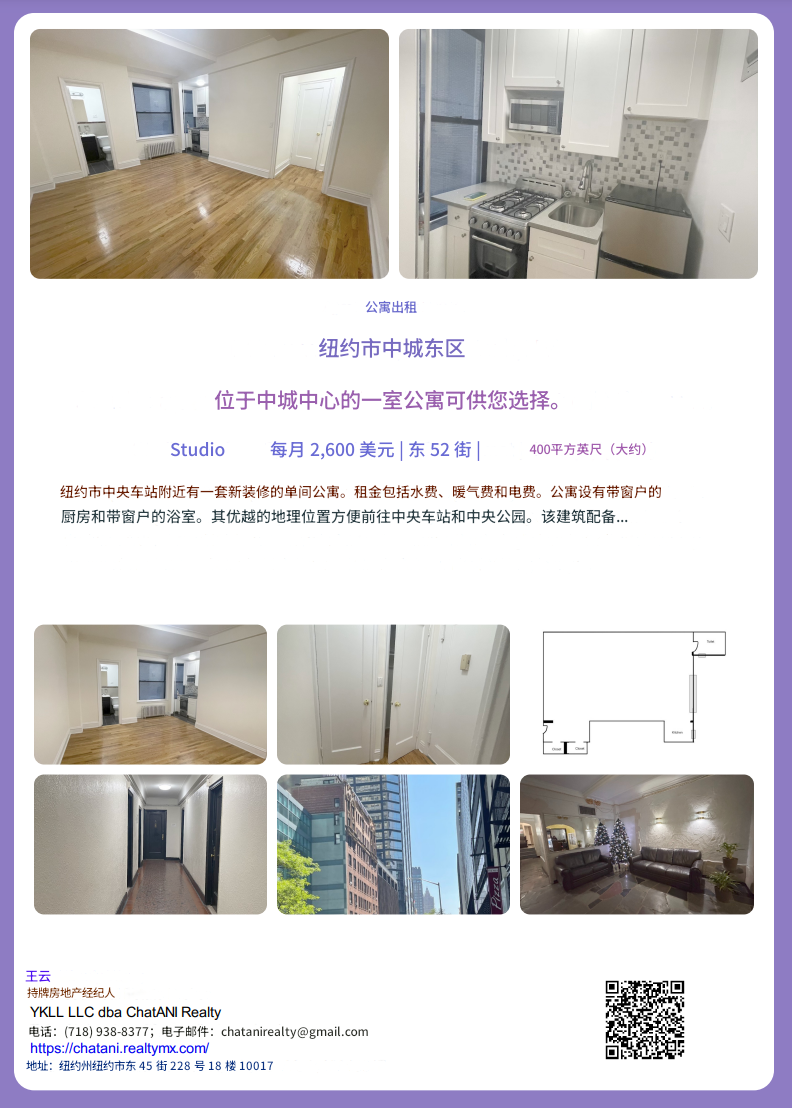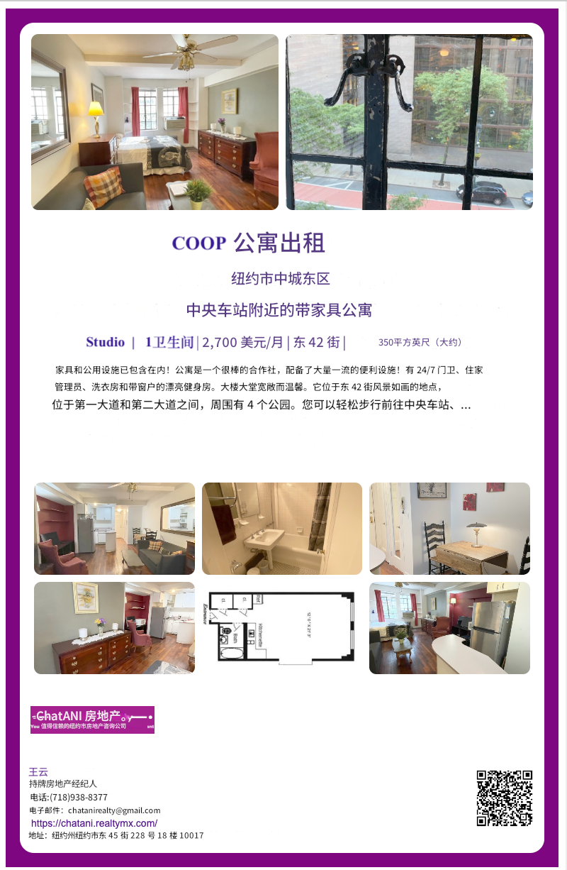 房屋公展:纽约市曼哈顿中城中心位置8套公寓火热招租!