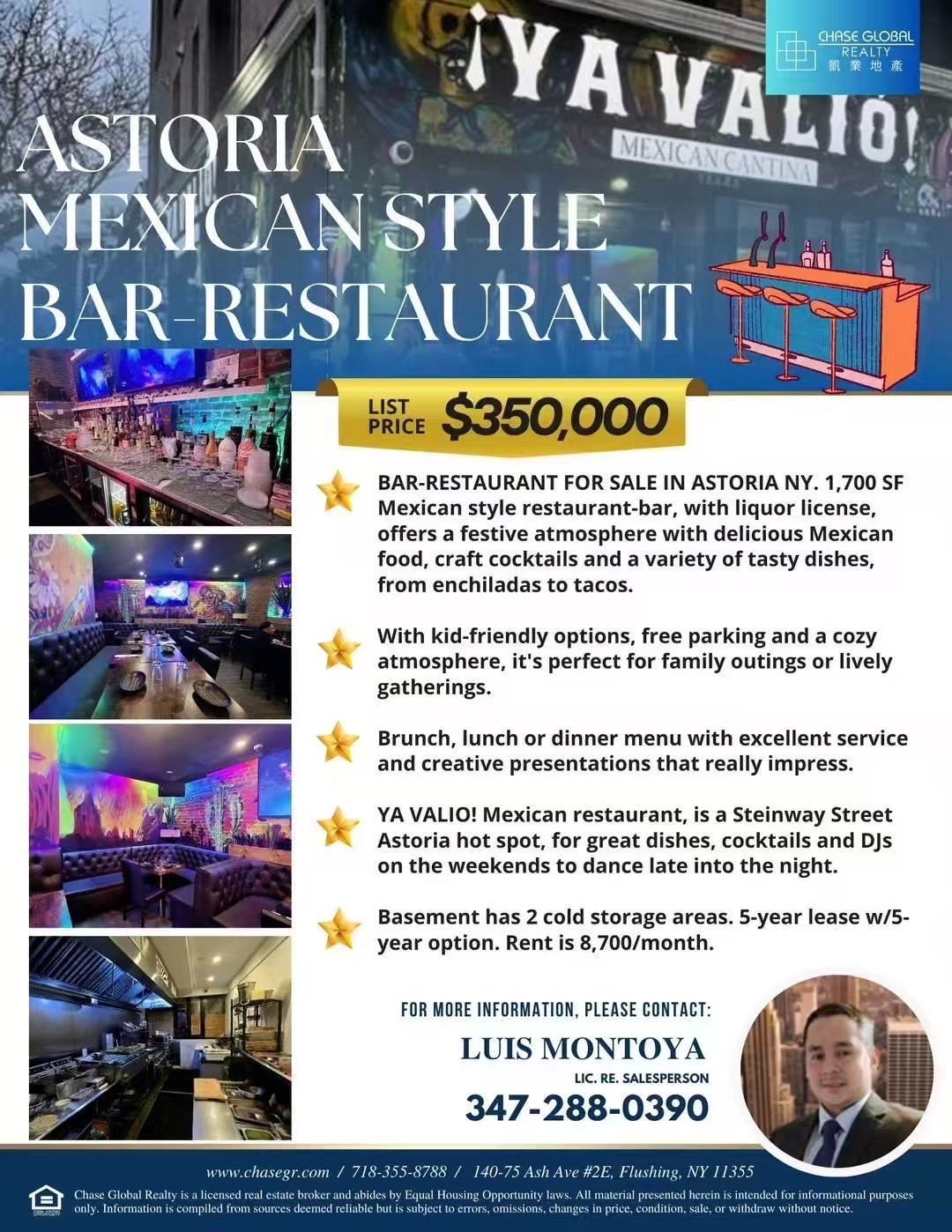 [Rich]Astoria 墨西哥风格酒吧餐厅出售[Rich]