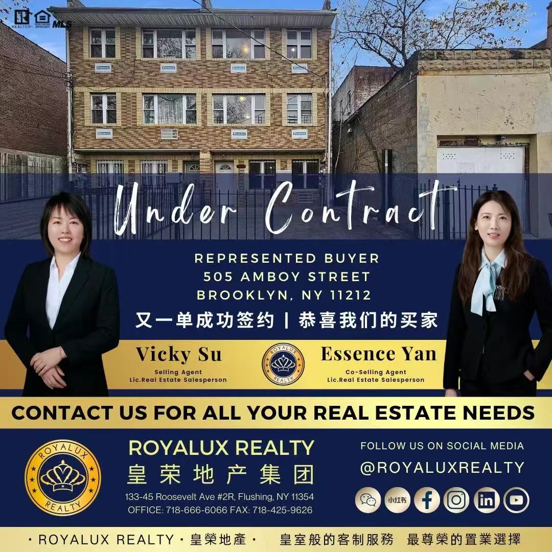 纽约华人地产公司纽约高端经验房地产经纪 The Best Real Estate Agent in New York 纽约地产经纪最佳地产经纪人New York Top Real Estate Agent纽约法拉盛著名地产经纪人[庆祝][庆祝]双喜临门,两栋房产同日进入合约[庆祝][庆祝]衷心感谢每一位参与此次交易的买家,是你们的信任和支持,让我们能够不断前行,为客户提供更加优质的服务。特别值得一提的是,其中一位身处海外的买家,仅凭对我们的信任,全程委托我们进行房产交易。这种跨越千山万水的信任,让我们深感荣幸和感动。期待着更多的海外朋友能够与我们建立联系,共同探索美国房产投资的无限美好!让我们携手共进,共创美好未来!