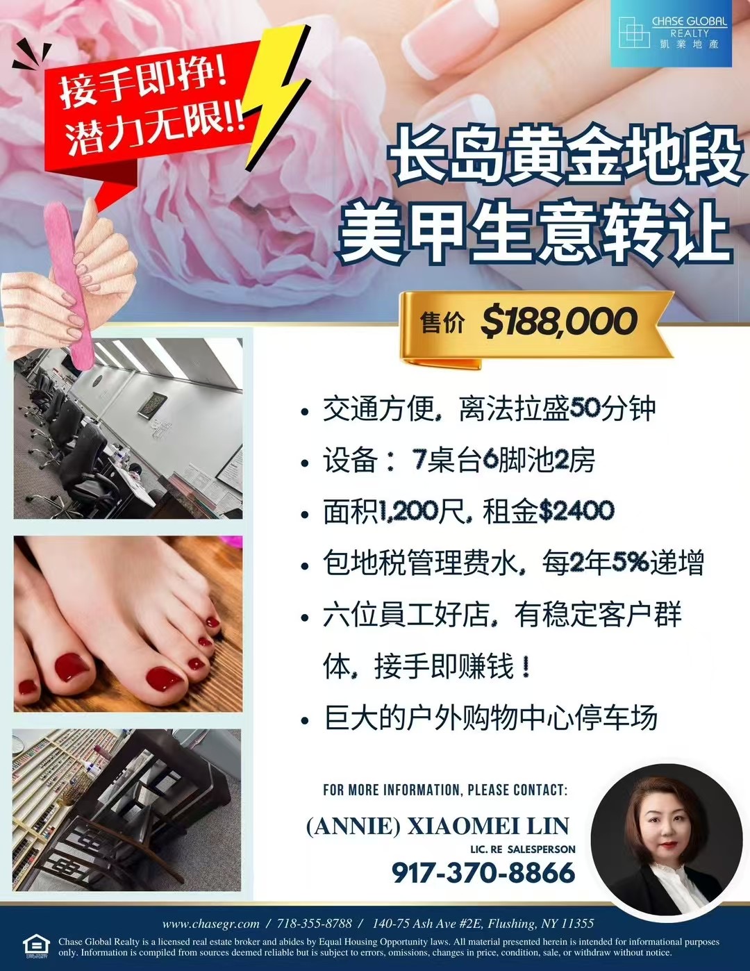 [Rich]长岛黄金地段Smithtown美甲店出售[Rich]