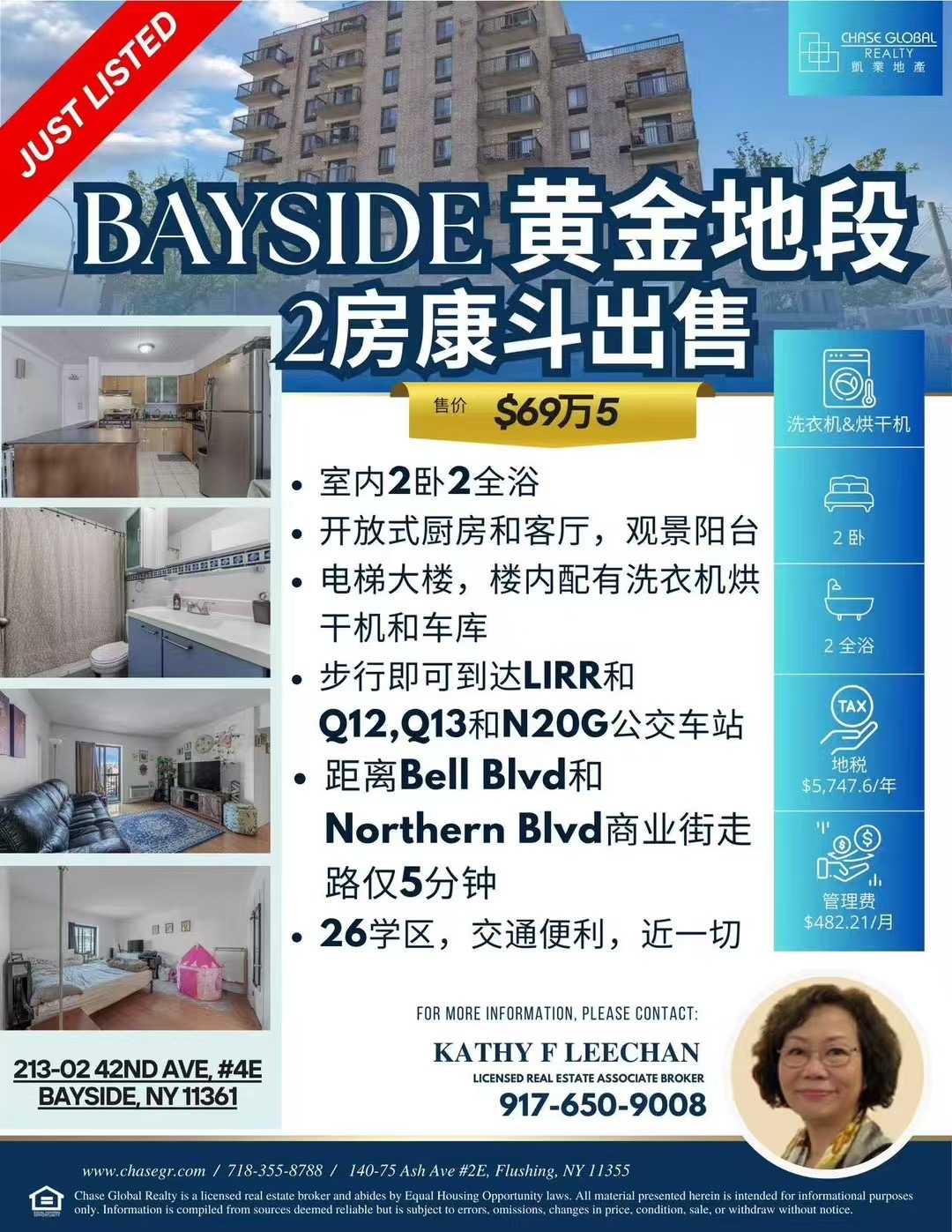 纽约贝赛康斗出售Oakland Gardens NY新上市贝赛高档康斗出售贝赛豪华康斗独家预售买卖 🔥凯业地产全新房源 黄金地段2房2浴康斗出售$695,000🔥