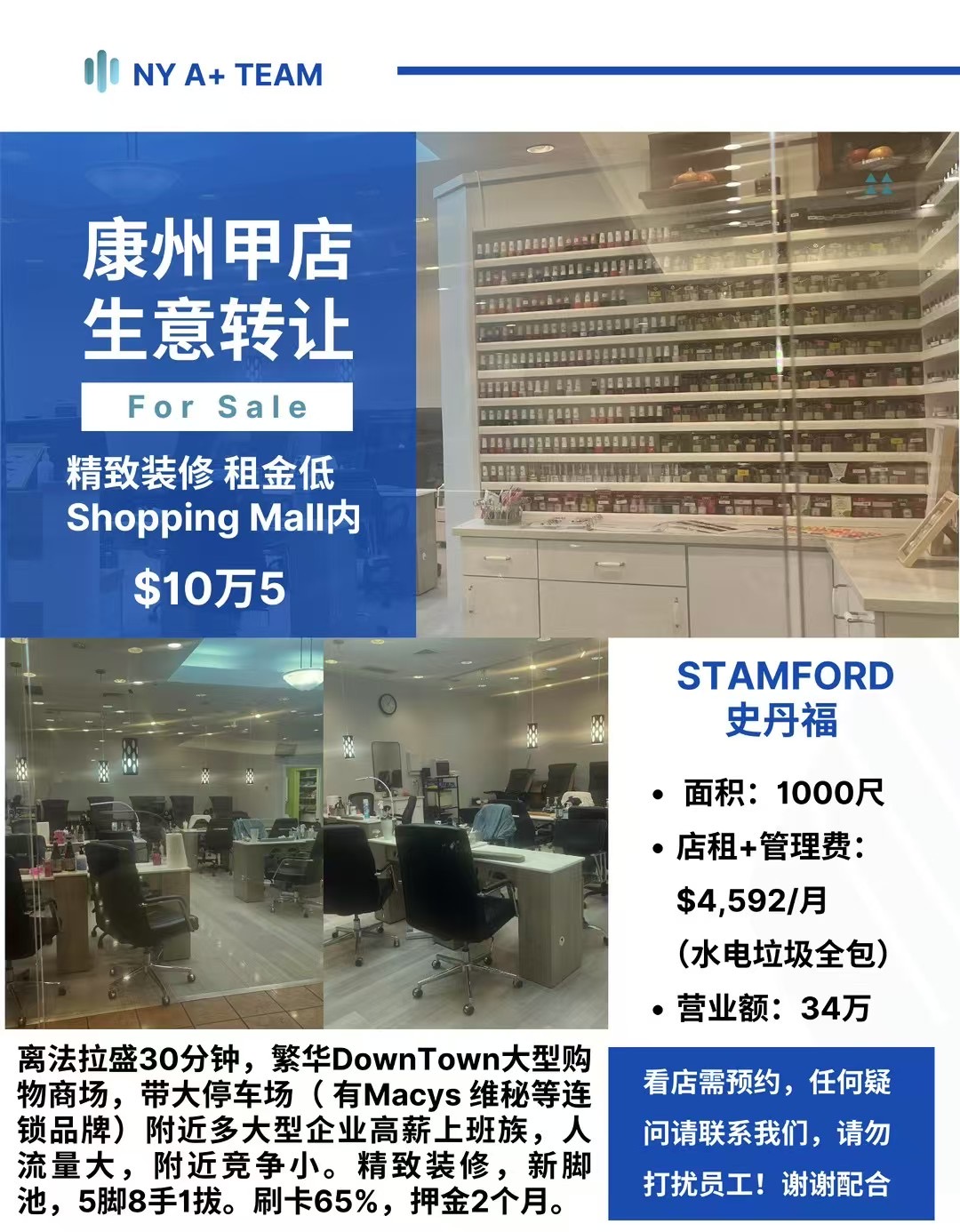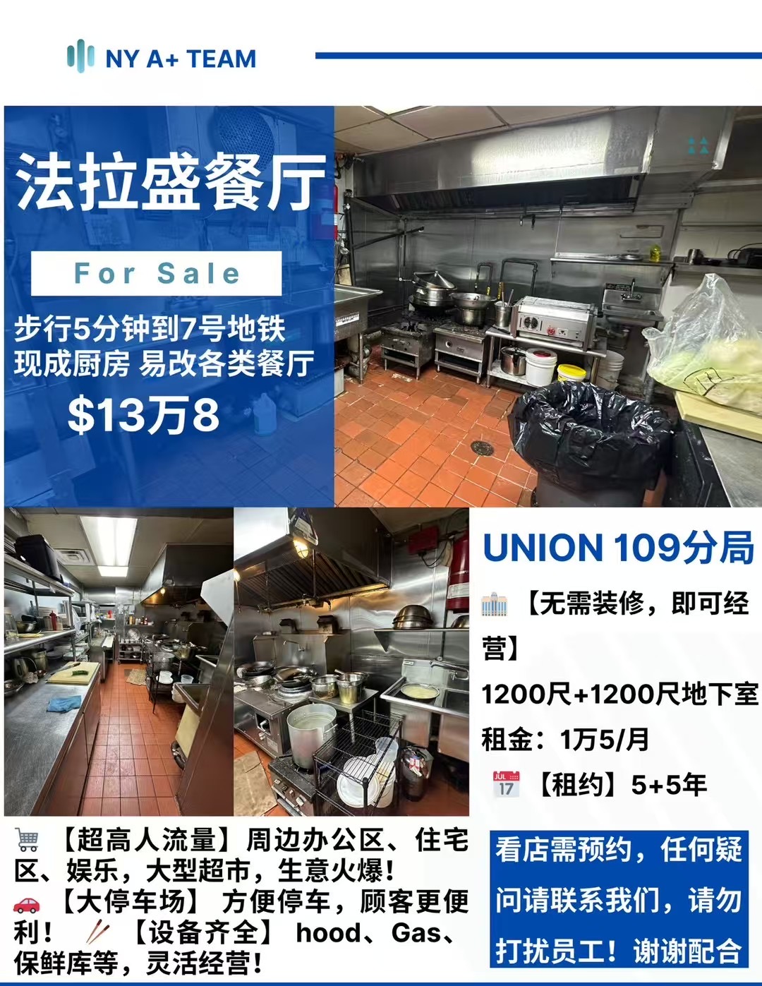 💥纽约及周边地区(康州/布鲁克林/长岛/法拉盛)餐馆/干洗店/指甲店生意出售☄️商业地产租赁/出售🔺 A+ TEAM独家代理🔺 欢迎合作转发