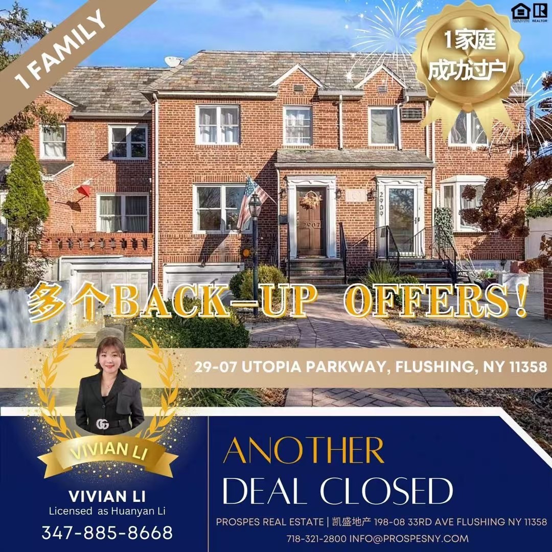 凯盛地产经纪Vivian Li成功过户!✨💪🏼💪🏼感谢我们的买家选择凯盛经纪Vivian帮助他找到位于Flushing的1家庭Vivian认真负责,专业可靠,顺利过户!