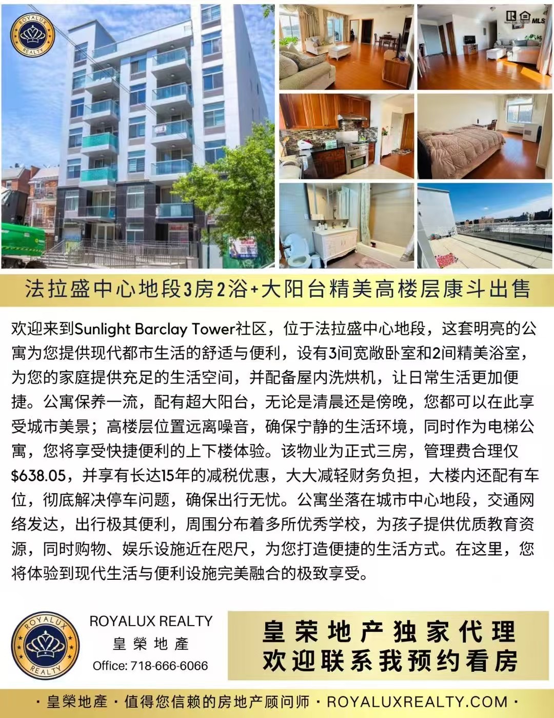 纽约法拉盛豪华康斗出售Flushing Luxury Condo NY 新上市法拉盛高档康斗出售法拉盛豪华康斗独家预售买卖 👑皇荣地产即将上市独家代理好房源👑法拉盛中心地段3房2浴+大阳台精美高楼层康斗出售👑康斗介绍:
