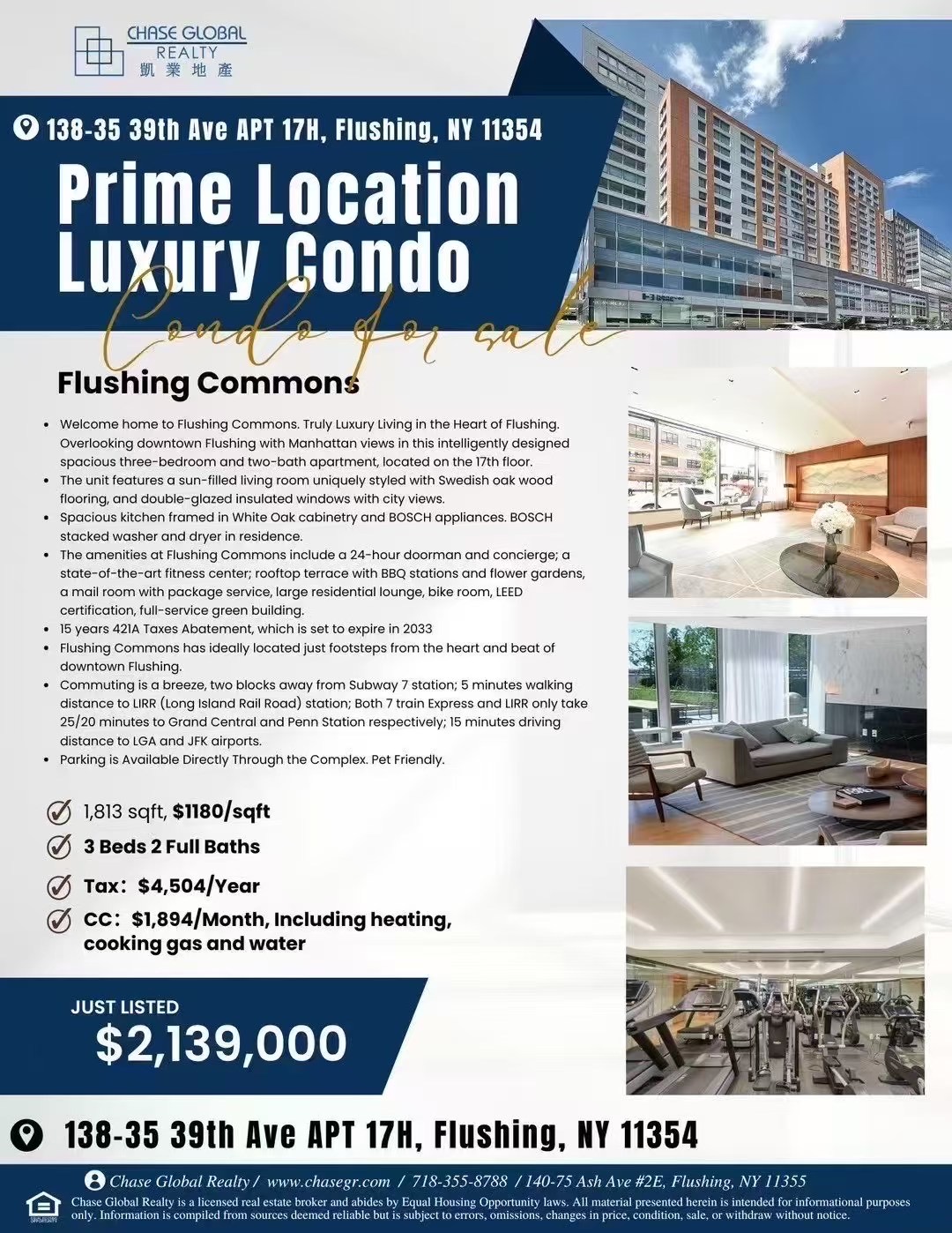 纽约法拉盛豪华康斗出售Flushing Luxury Condo NY 新上市法拉盛高档康斗出售法拉盛豪华康斗独家预售买卖 🔥 凯业地产法拉盛黄金地段豪华康斗出售🔥💰售价$213万9💰