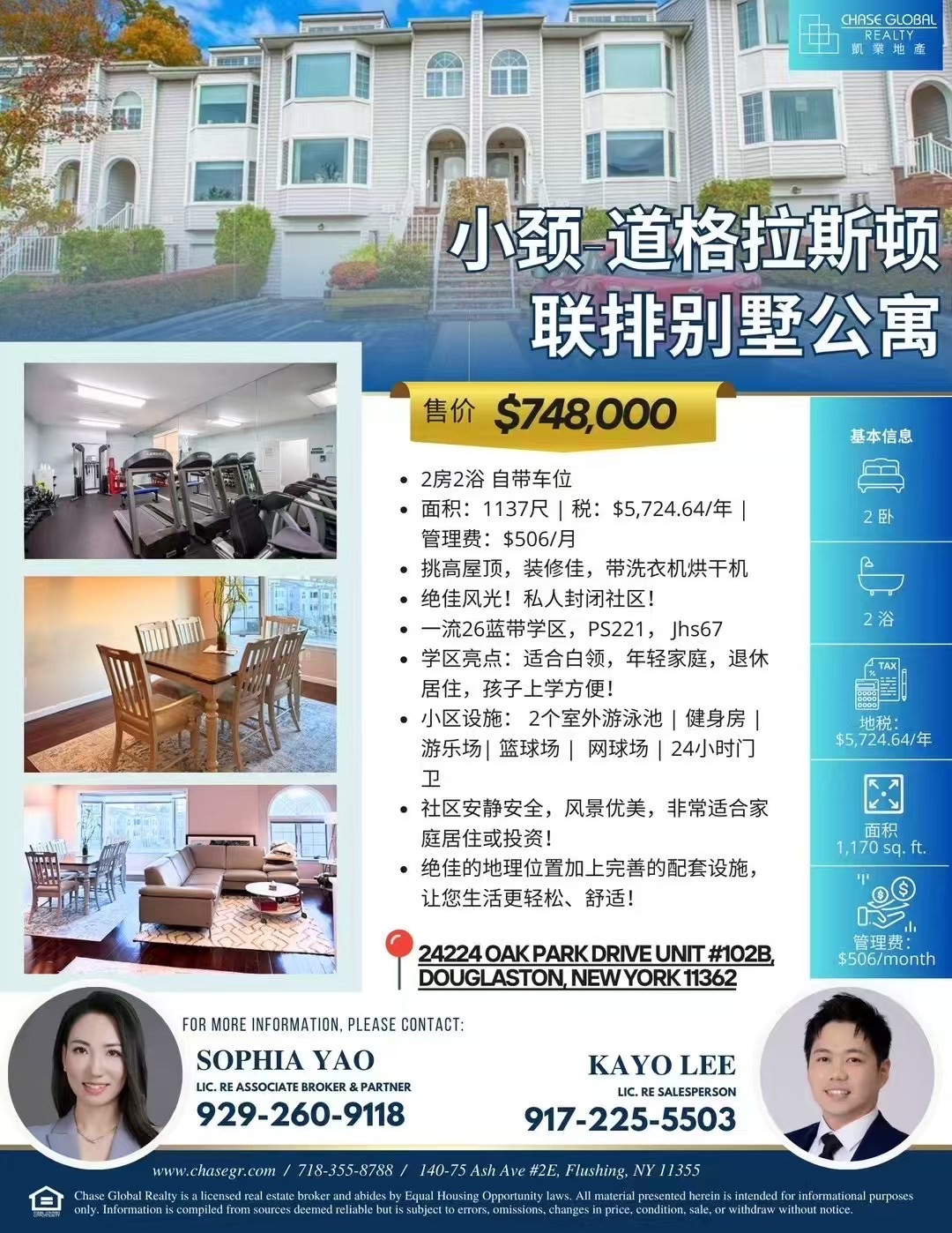 纽约小颈房子出售Little Neck NY 新上市小颈房屋出售小颈豪宅独家出售买卖🔥 凯业地产小颈-道格拉斯顿联排别墅公寓出售🔥💰售价$74万8💰