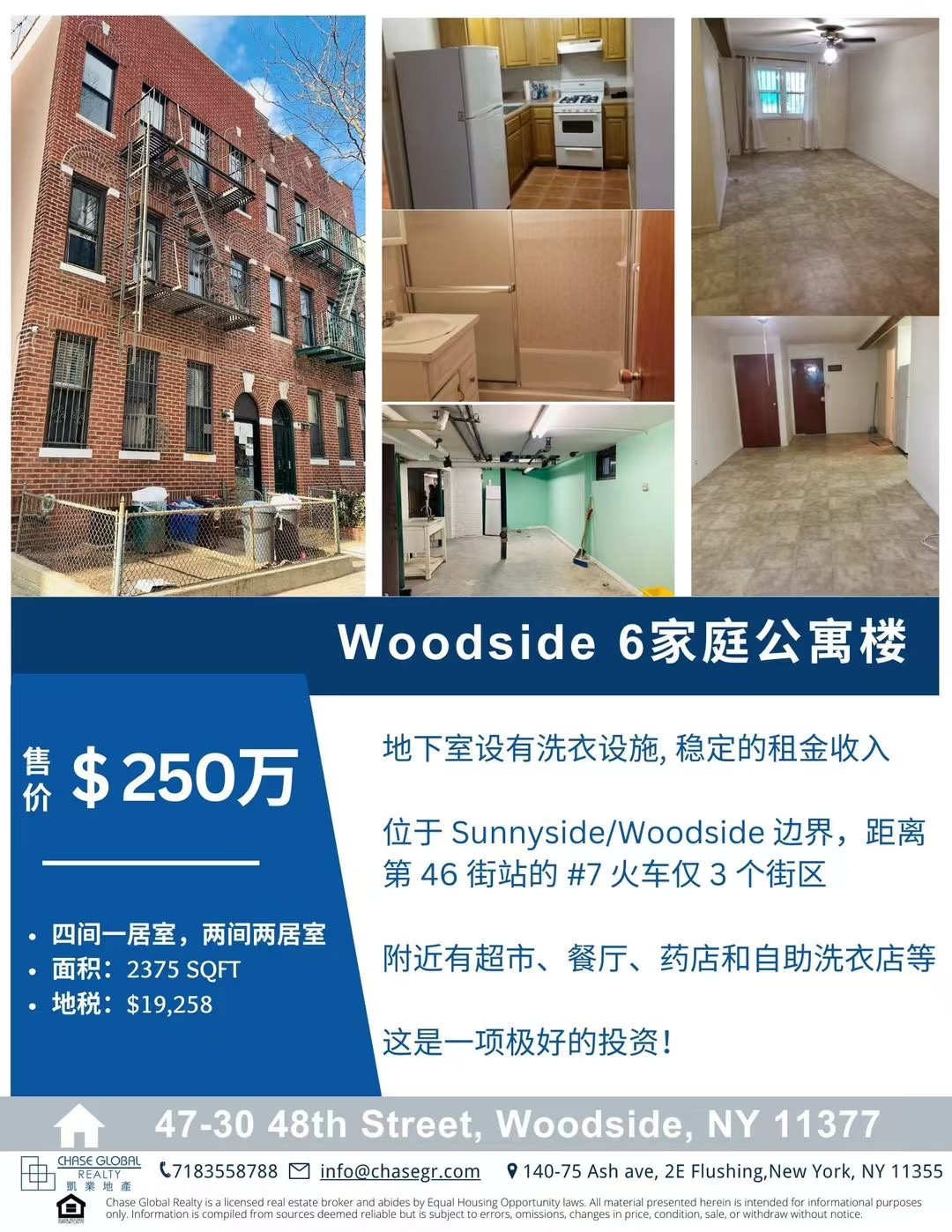 纽约皇后区木边房子出售Woodside Queens NY新上市木边房屋独家出售买卖🌟凯业地产每日推荐房源Woodside 6家庭公寓楼🌟📍47-30 48th St, Woodside, NY 11377