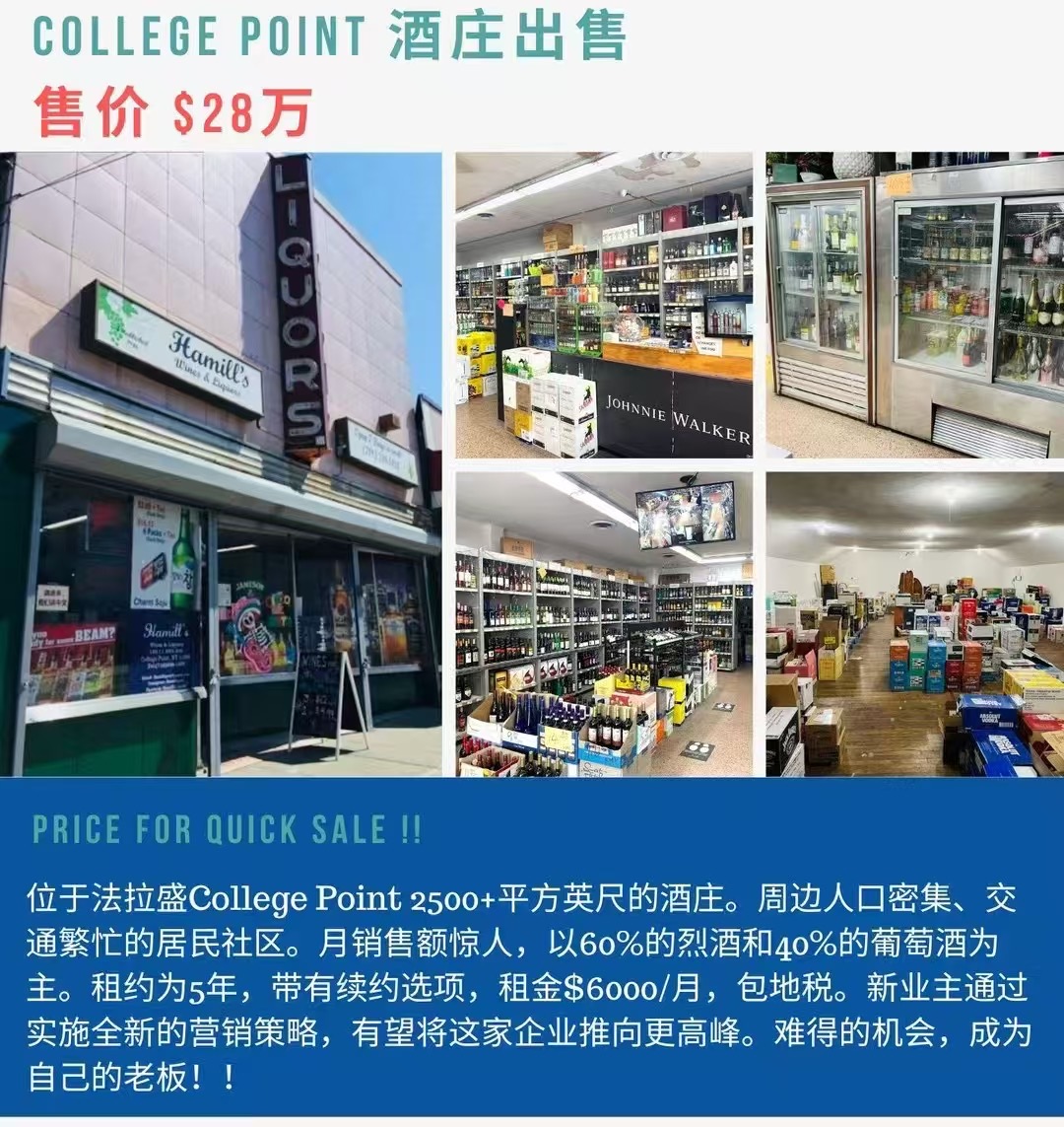 酒庄出售 法拉盛大学点酒庄出售 新上市投资赚钱酒庄出售:酒庄 位於法拉盛College Point社區, 周邊人口密集、交通繁忙的居民社區。