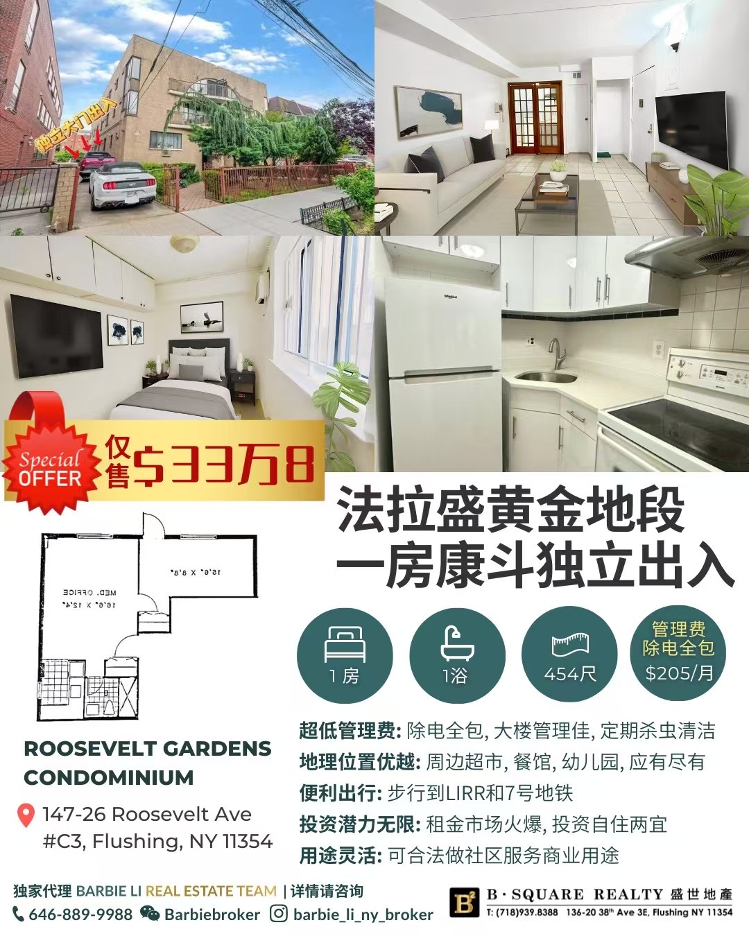纽约法拉盛豪华康斗出售Flushing Luxury Condo NY 新上市法拉盛高档康斗出售法拉盛豪华康斗独家预售买卖 🆕法拉盛黄金地段一房康斗独立出入